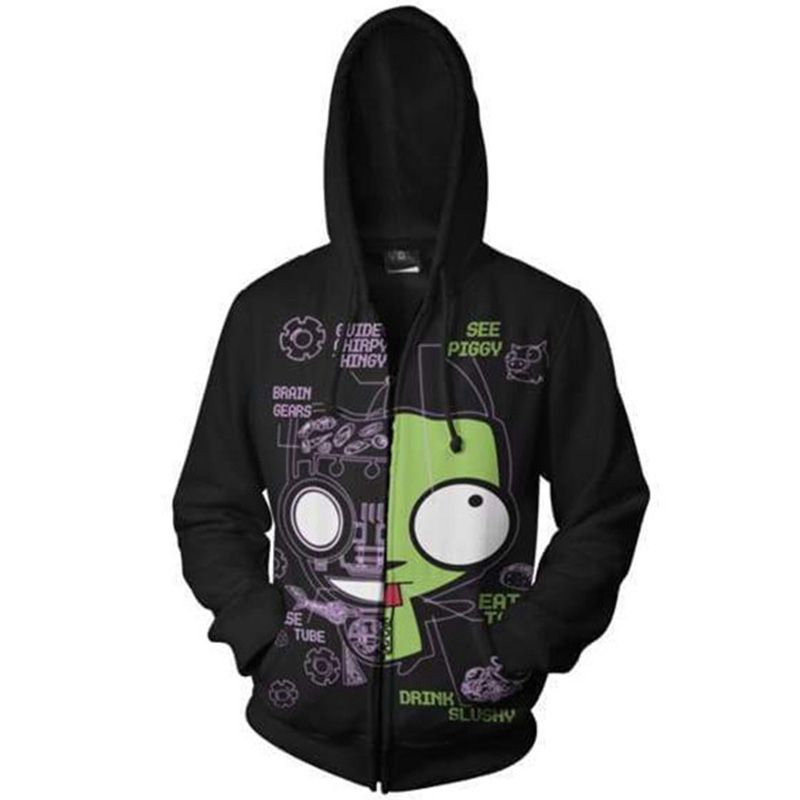 Invader ZIM Costume Printed Men Zipper Hoodie Jacket Cosplay