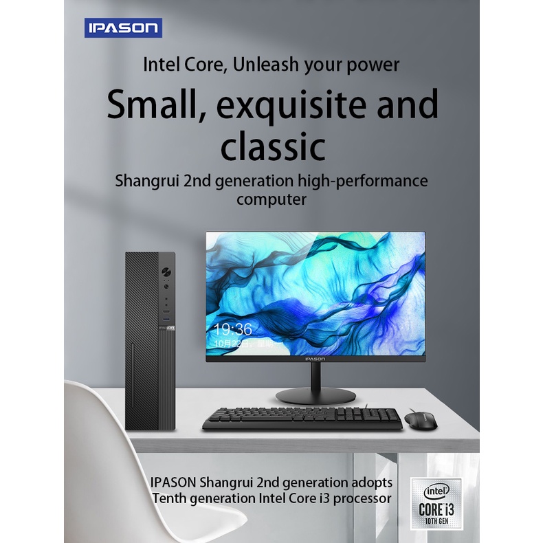 Ipason Office Mini Pc Intel i3 10105 DDR4 8G 256G SSD With 21.5 Inch Monitor Free Keyboard and Mouse