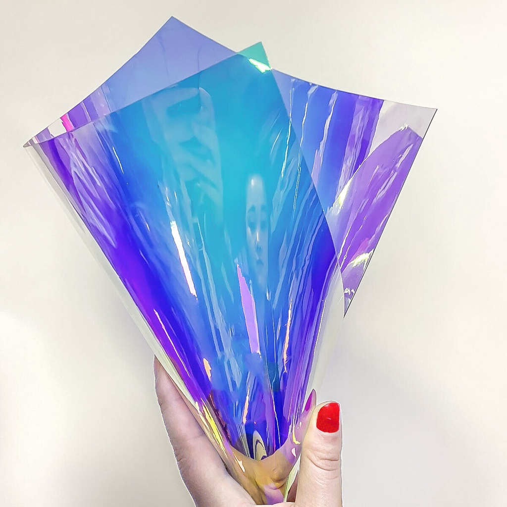 Iridescent Holographic Clear Transparent PVC Fabric Laser Rainbow Shiny Vinyl Material Bow Craft Bag