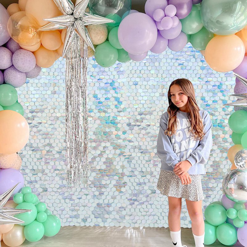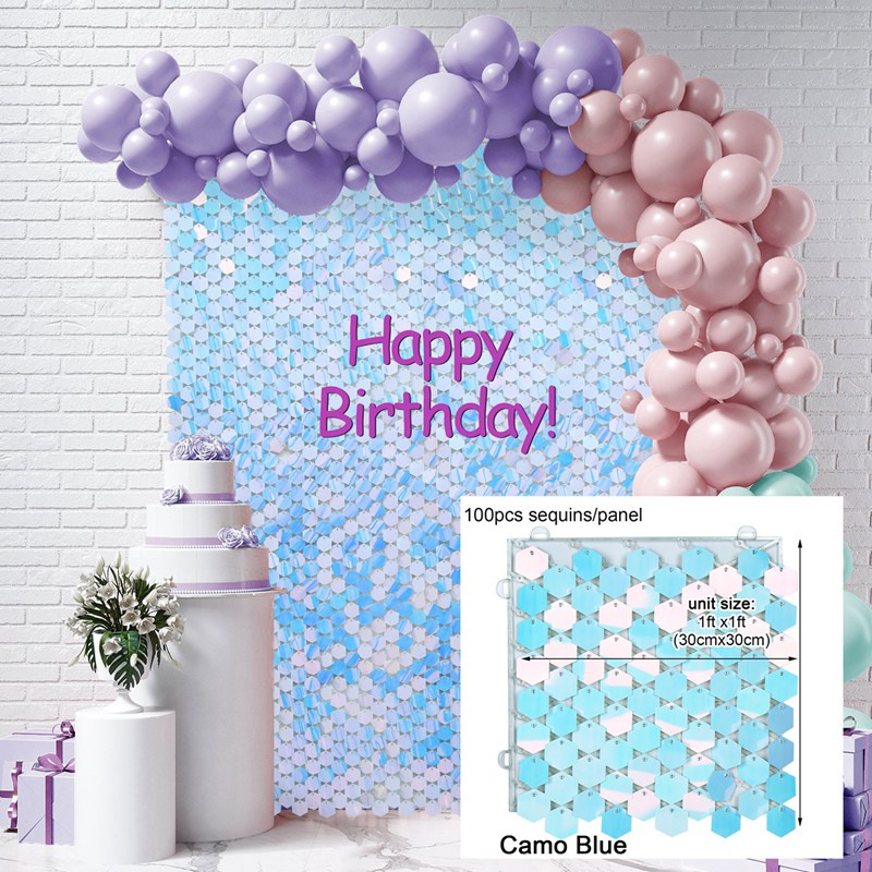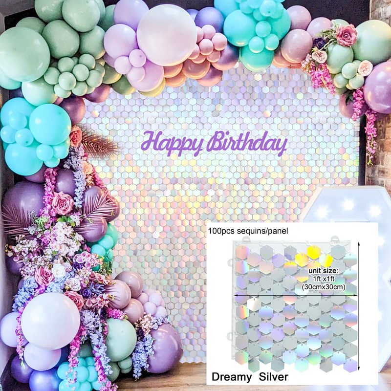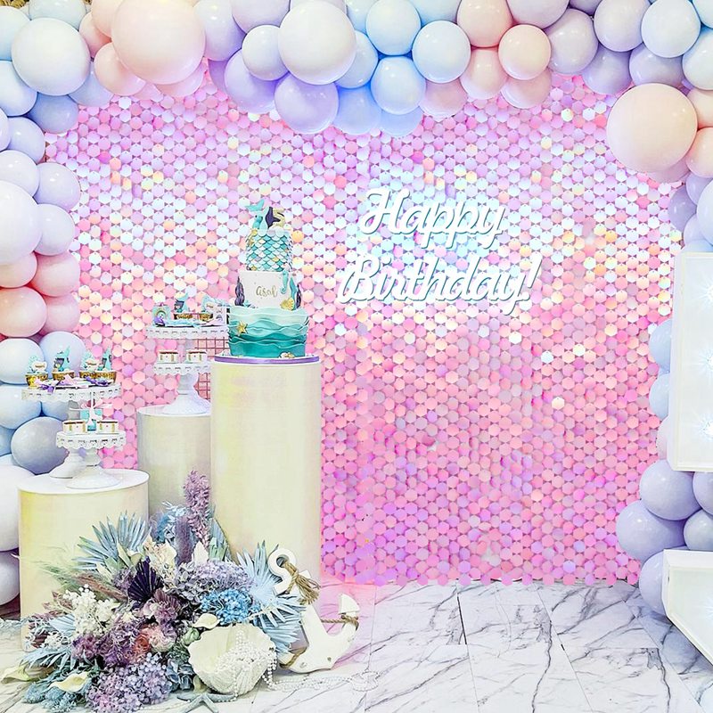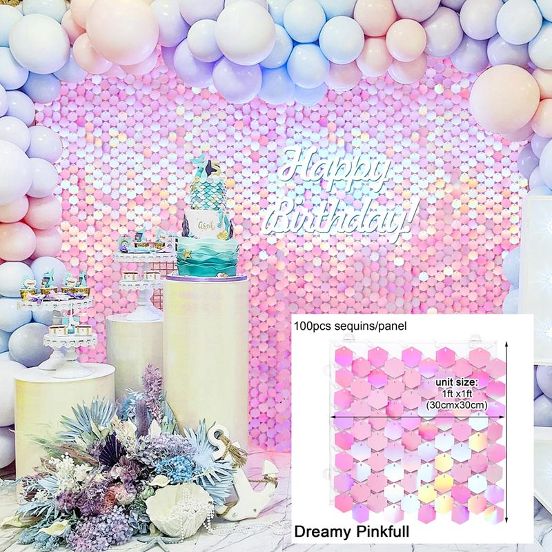 Iridescent Party Sequin Backdrop Glitter Square Sequin Panel Wall Wedding Decor Baby Shower Birthday Backdrop Decorations Party Background