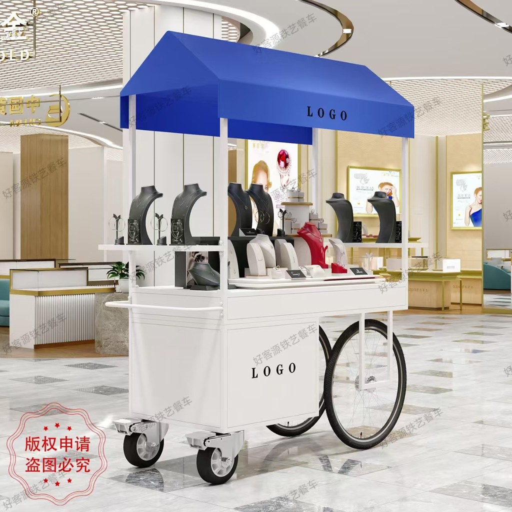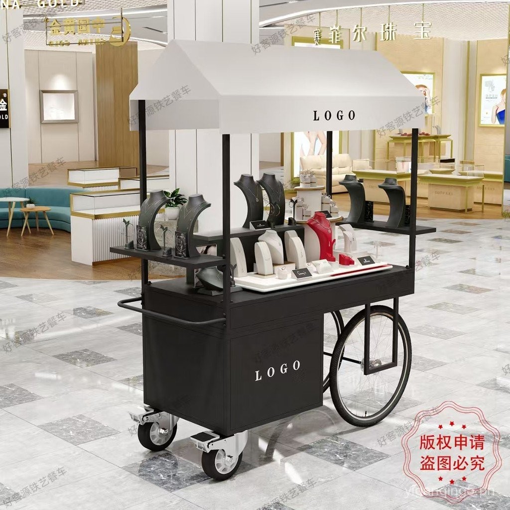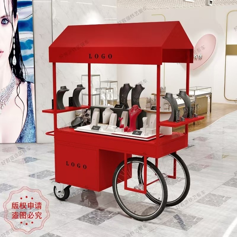 Iron Art Stall Push Cart Mobile Street Food Cart Display Stand Night Market Flower Cart Outdoor Market Stall Promotion Cart