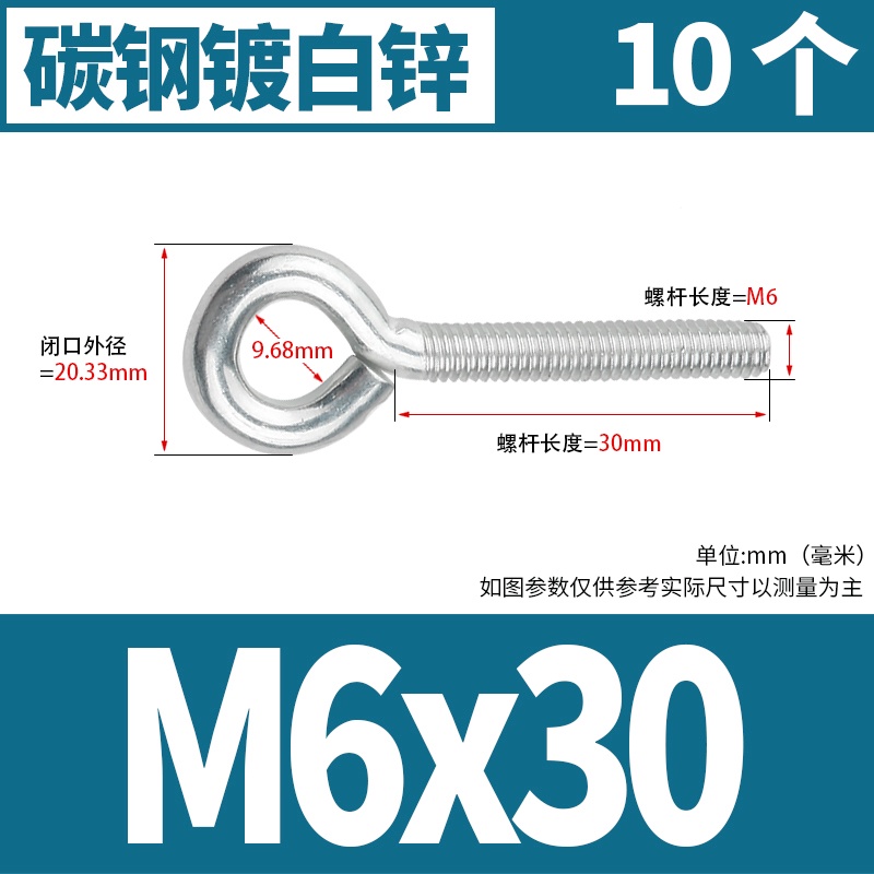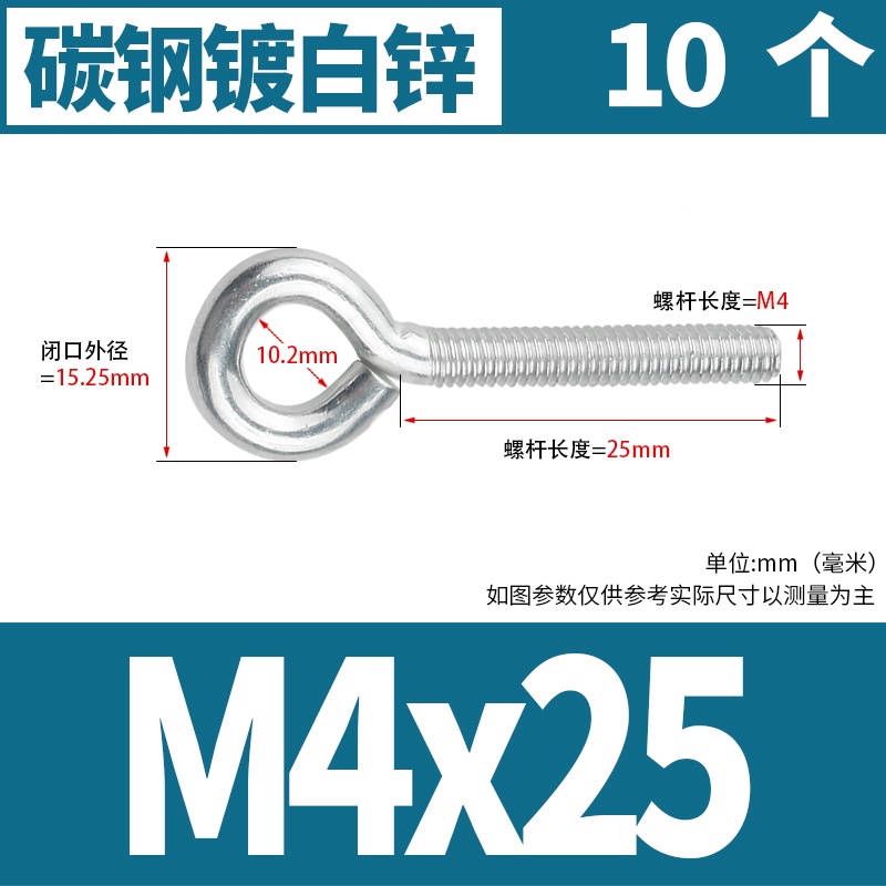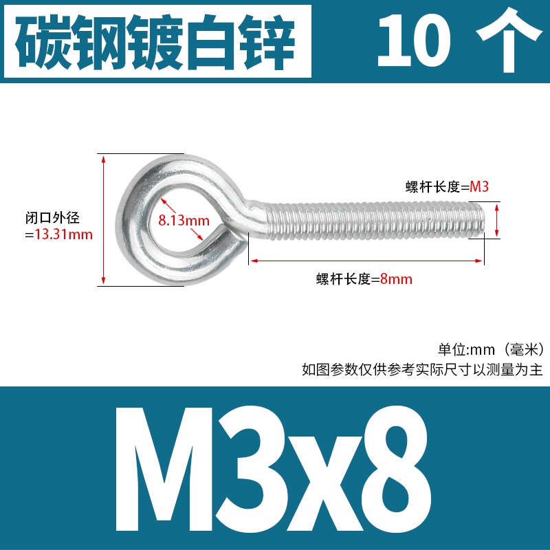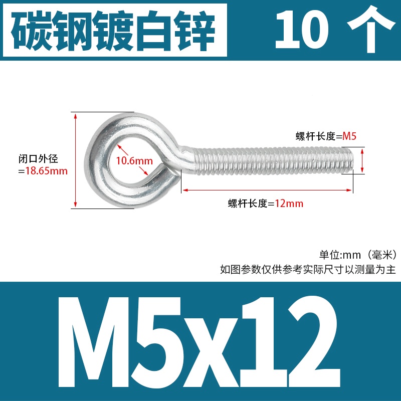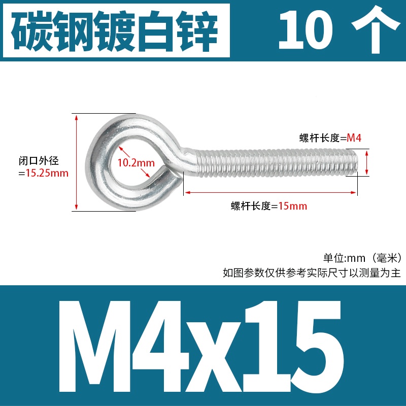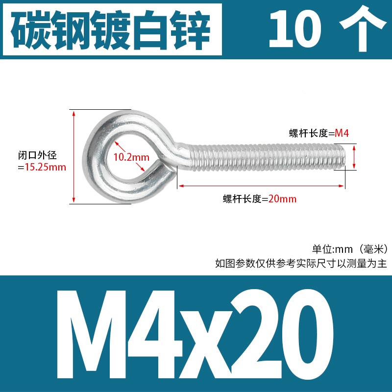 Iron White Zinc Ring Screw with Ring Hook Sheep Eye Machine Thread Screw Ring Bolt Nut Closed M4-M8