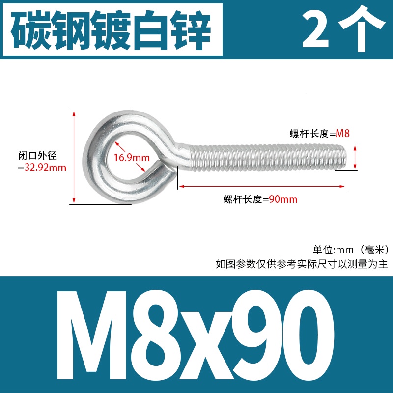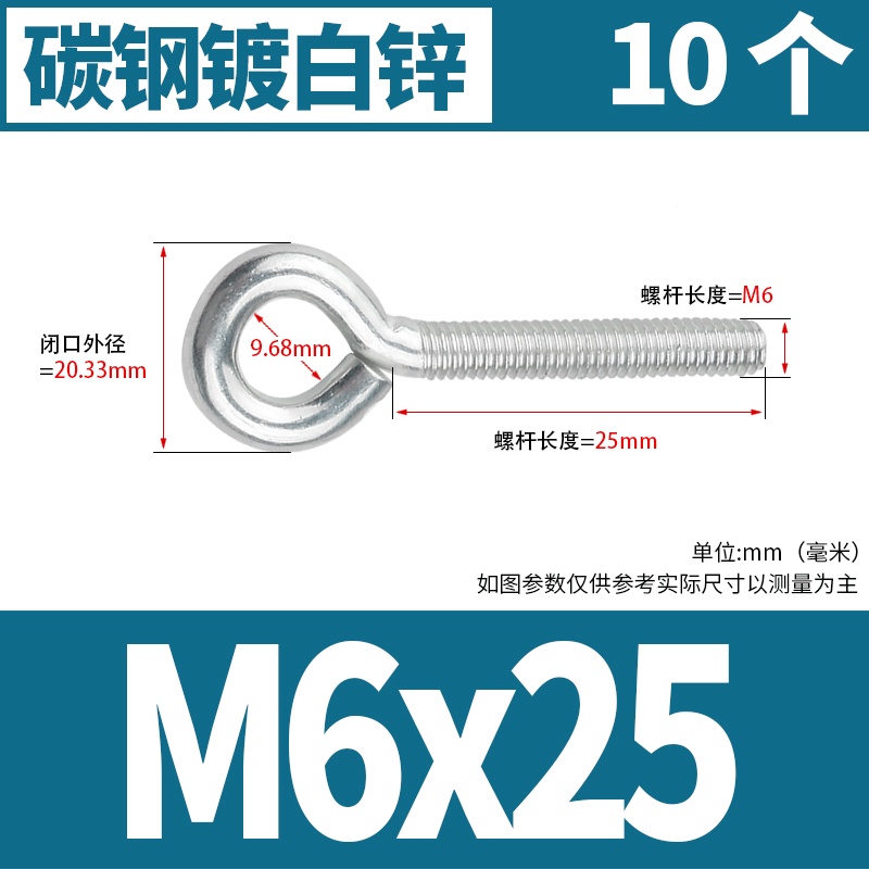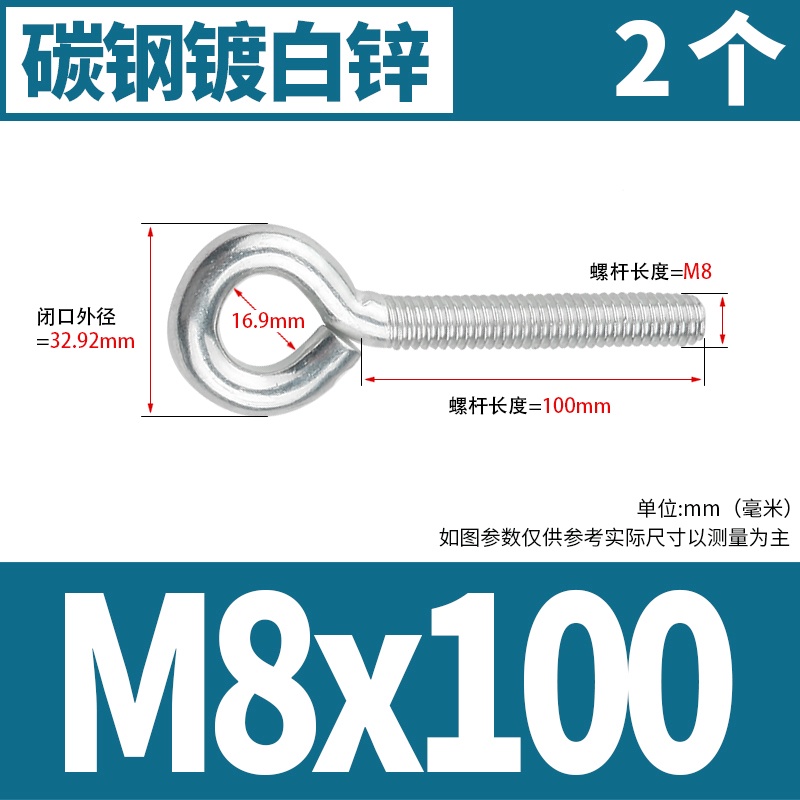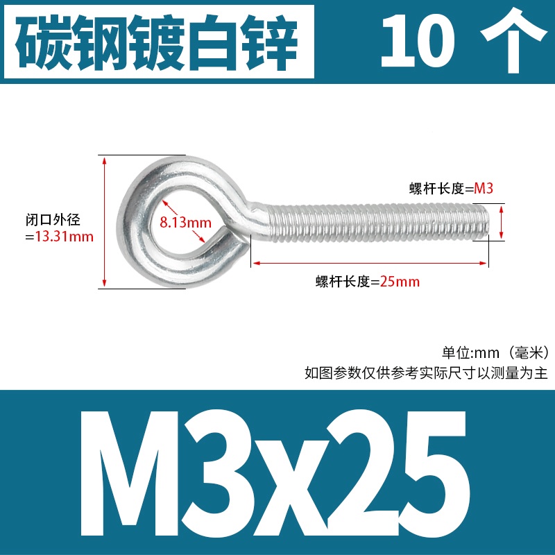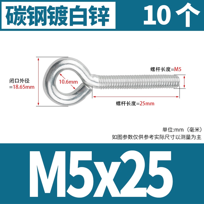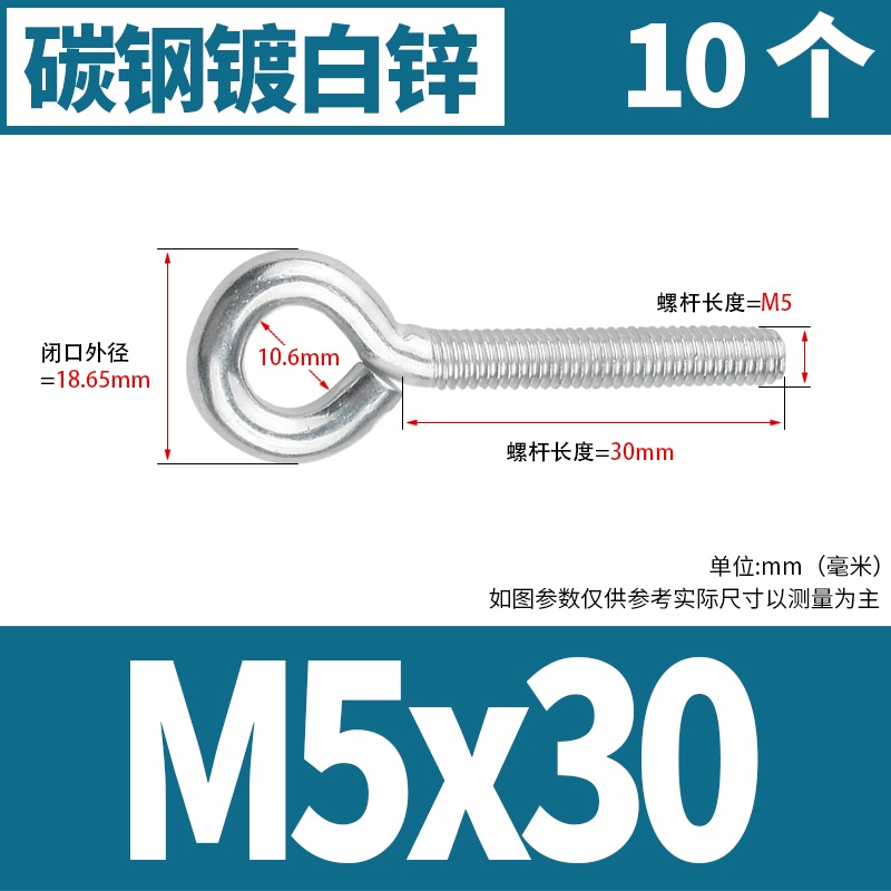 Iron White Zinc Ring Screw with Ring Hook Sheep Eye Machine Thread Screw Ring Bolt Nut Closed M4-M8