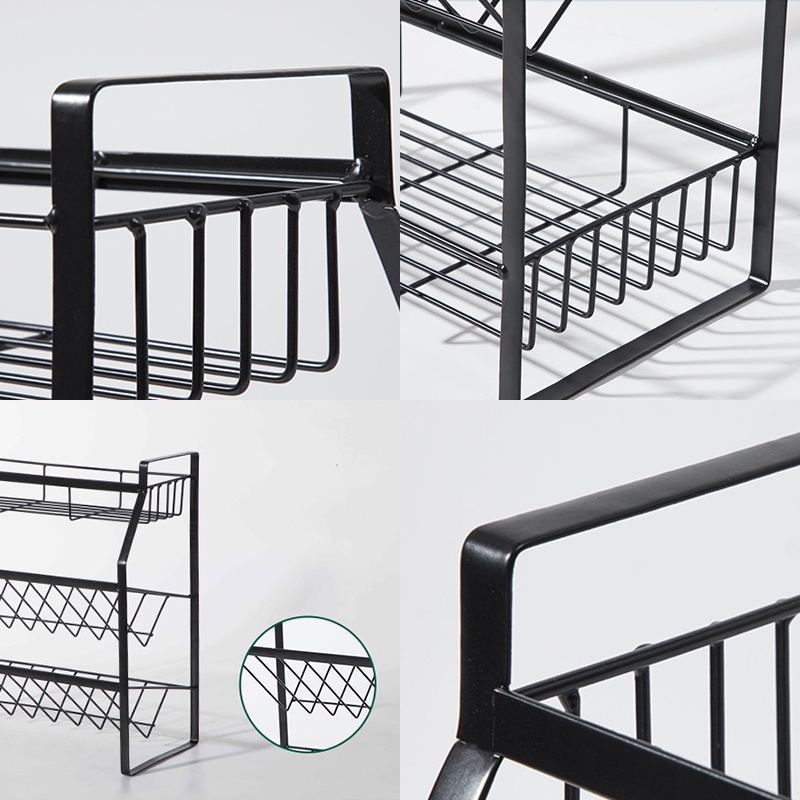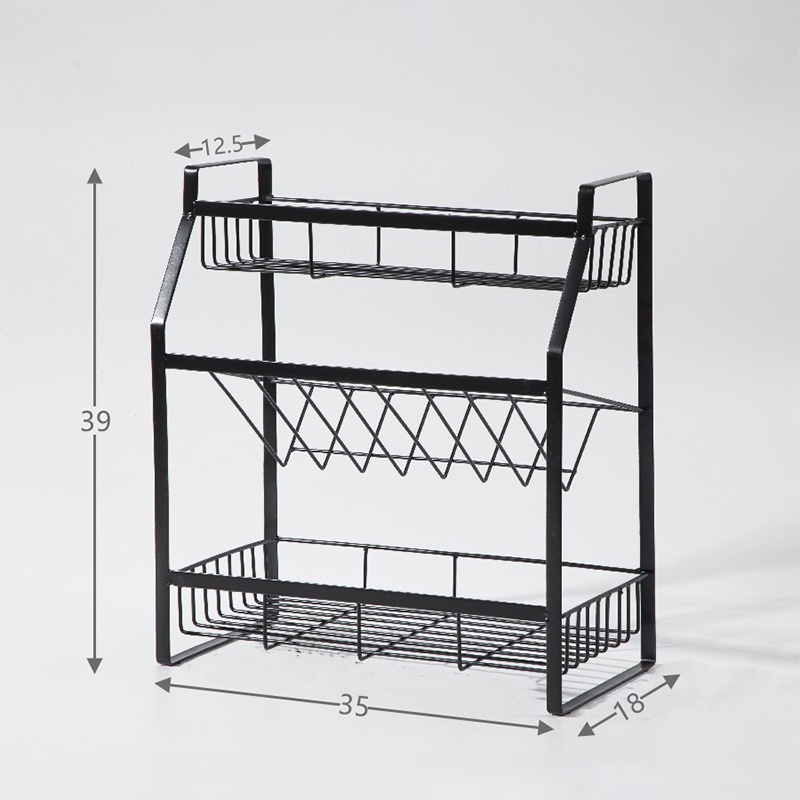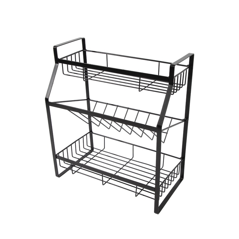 Iron kitchen spice rack condiment rack countertop condiment floor shelf storage rack black three-layer sauce bottle rack seasoning rack