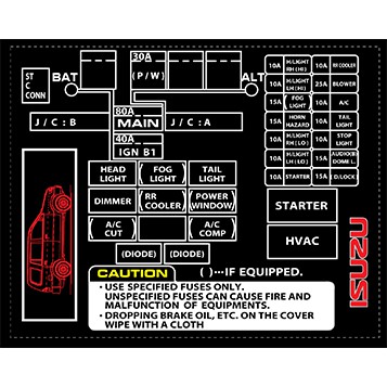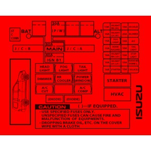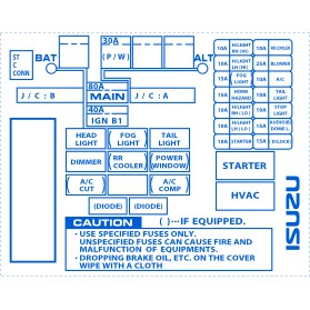 Isuzu Crosswind Panther Sportivo fusebox fuse box STICKER label (Heavy duty \ all weather)