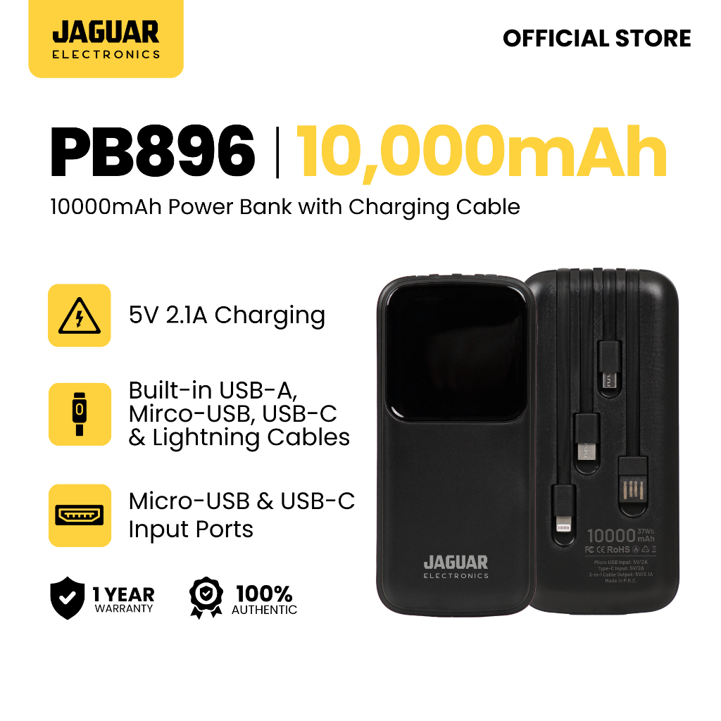 JAGUAR ELECTRONICS PB896 10000mAh Power Bank with Charging Cable With Type-C Lightning & Micro Cable
