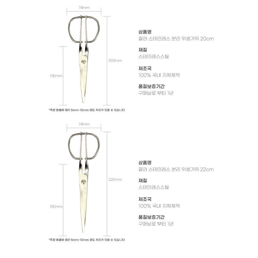 JALLA Kitchen Scissors Made in Korea All-Stand Detachable Scissors 20cm 22cm