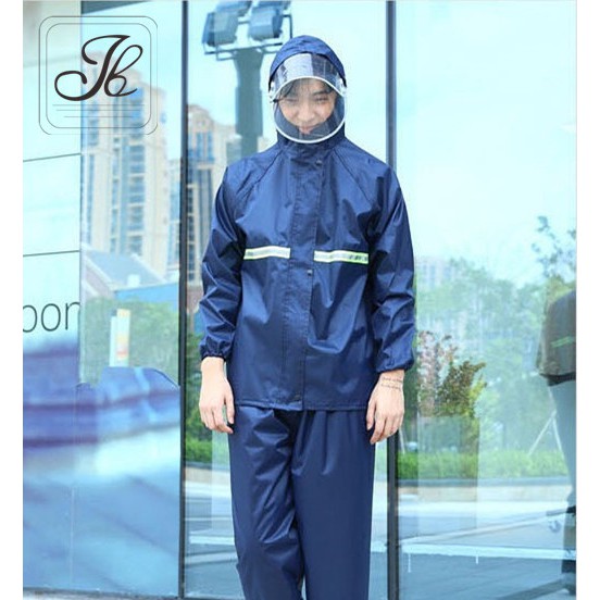 JBEE Rain Coat Motorcycle Detachable Double Hat Rainproof Thicken Mask Raincoat Set