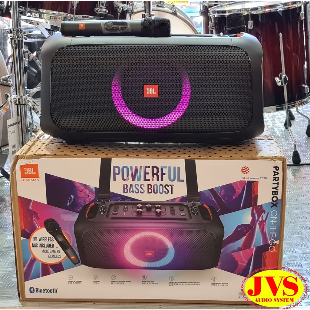 JBL Partybox On The Go Portable Bluetooth Speaker with 2 JBL Wireless Microphones