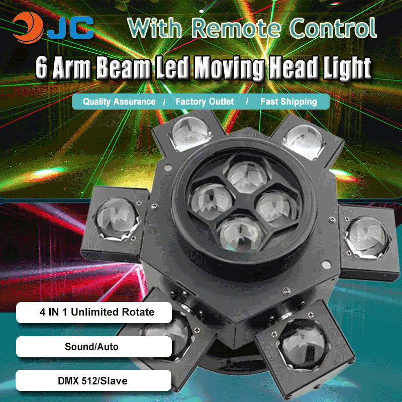 JC Moving Head RGB Beam Stage Light 150W 6 Arm 2 in 1 Beam+Party Light with DMX Interface for Wedding/Stage/Party/Bar/Disco Show