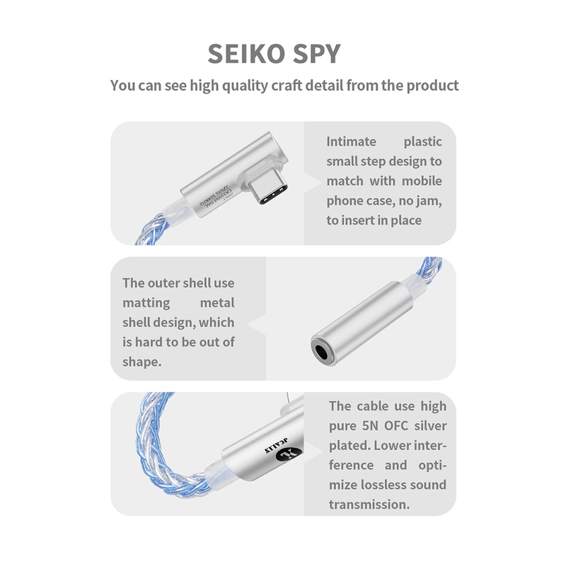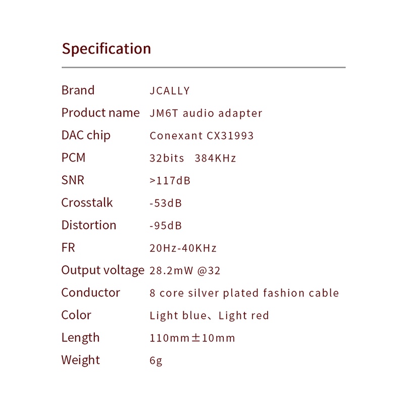 JCALLY JM6T Digital Audio Portable Decoding CX31993 DAC Type-C to 3.5mm Headphone Amplifier Hifi 32bit/384KHz L Plug Adapter