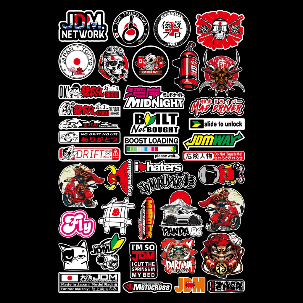 JDM Reflective Motorcycle Sticker Car Sticker Japanese Paper Kamikaze Vinyl Car Model Car Rear Windshield Window Body Sticker Decal