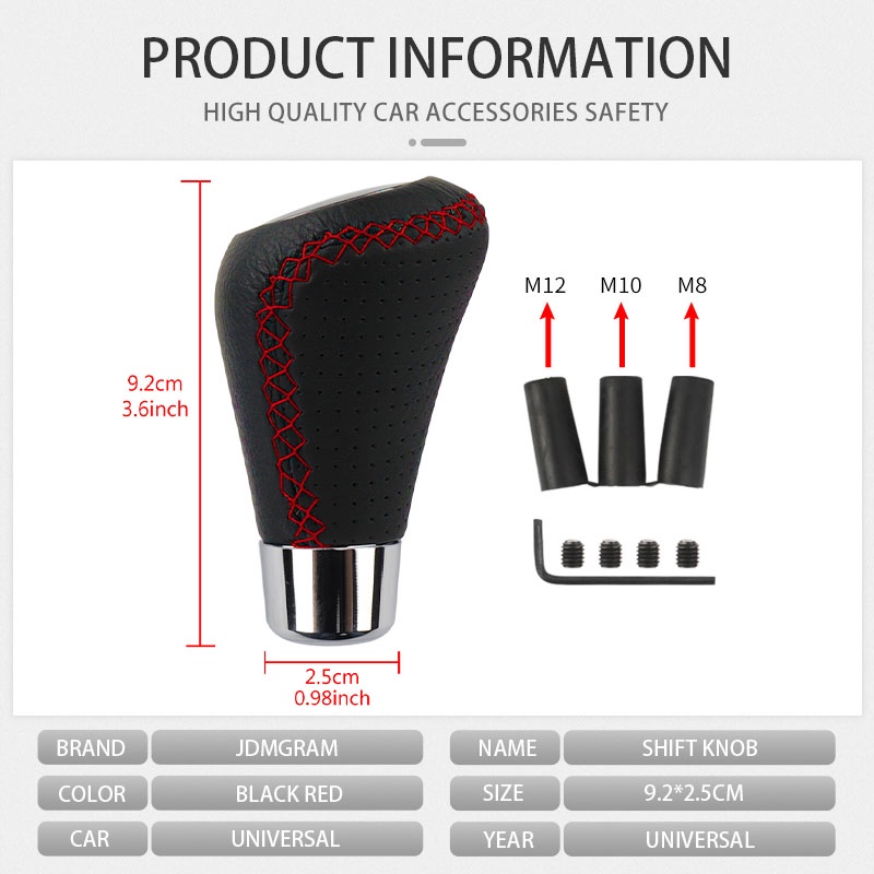 JDMGRAM Leather Car Gear Knob Manual 5 Speed Auto Universal Stick Shift Racing Shifter Lever Stitching Automobile Interior Accessories