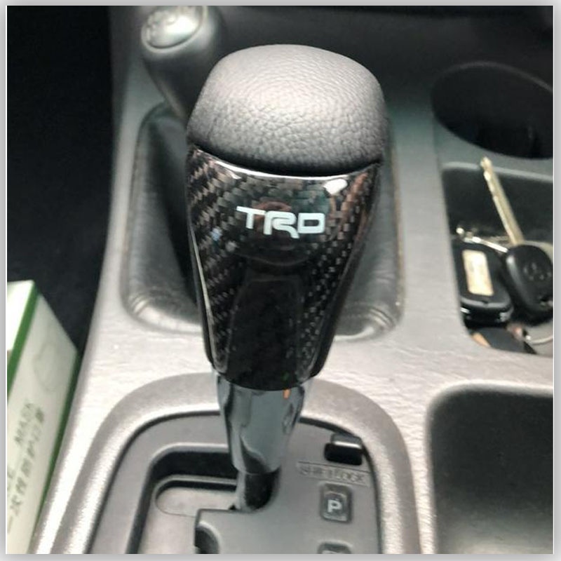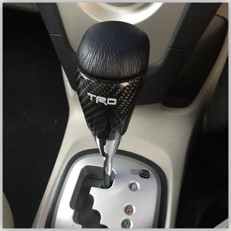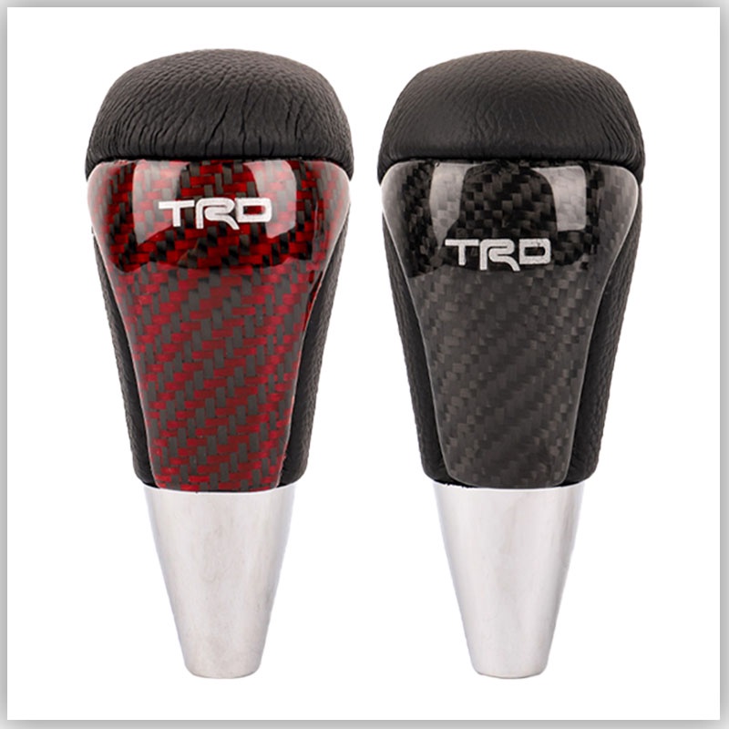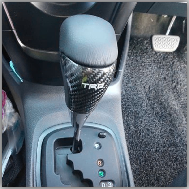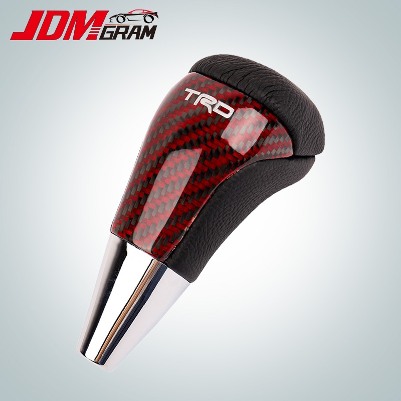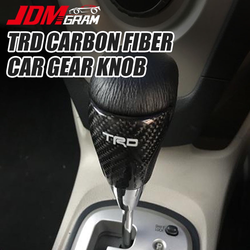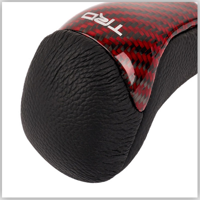 JDMGRAM TRD Carbon Fiber Car Gear Knob Manual Automatic Universal Leather Decoration Auto Push Down Stick Shift Speed Lever Head Auto Interior Accessories