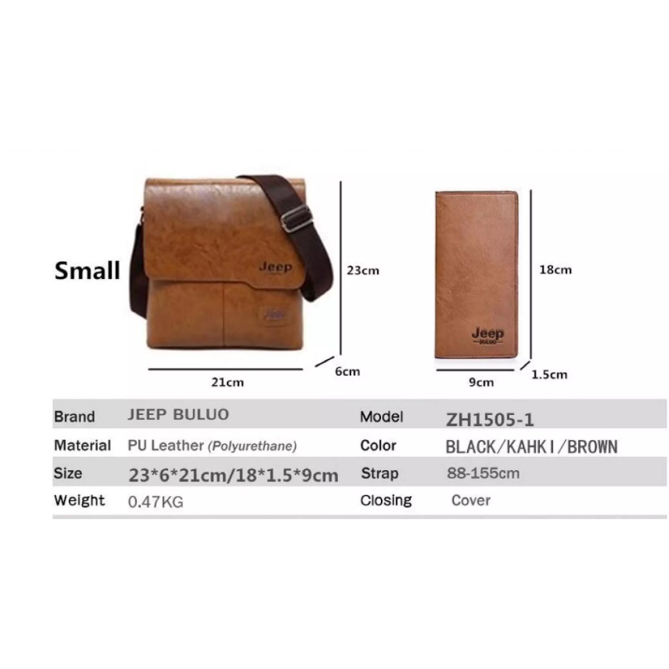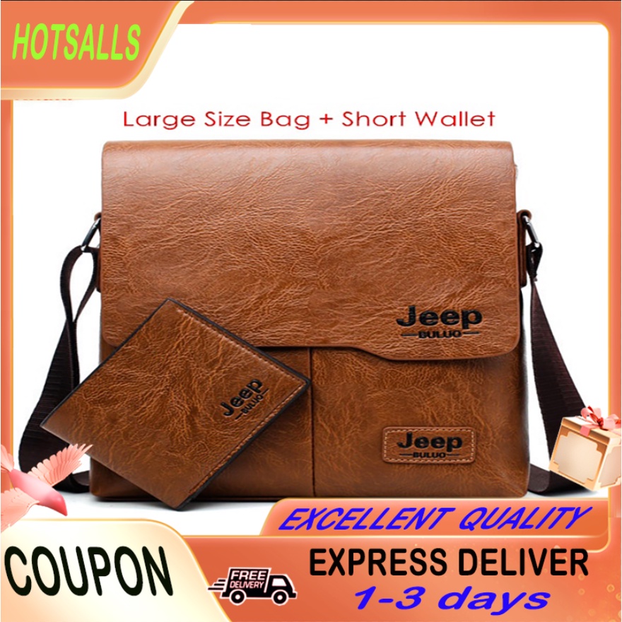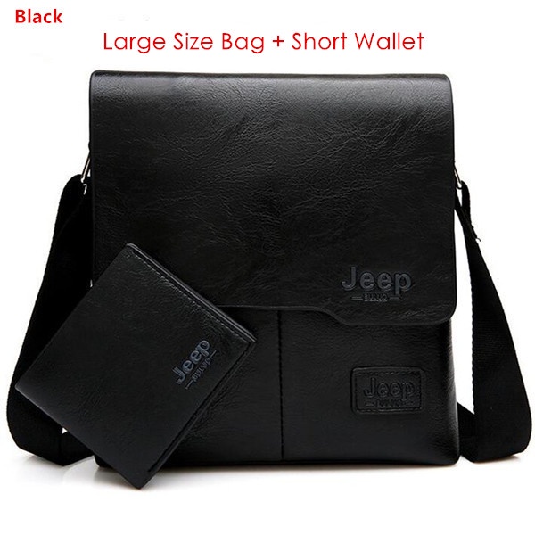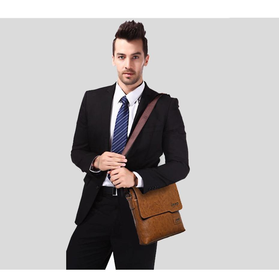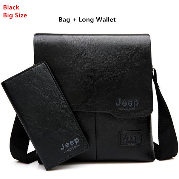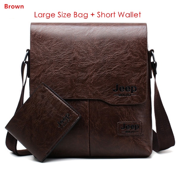 JEEP BULUO Man's Bag 2PC/Set Men Leather Messenger Shoulder Bags Business Crossbody Casual Bags