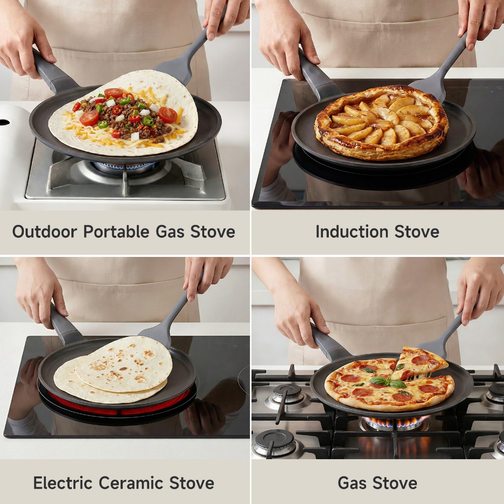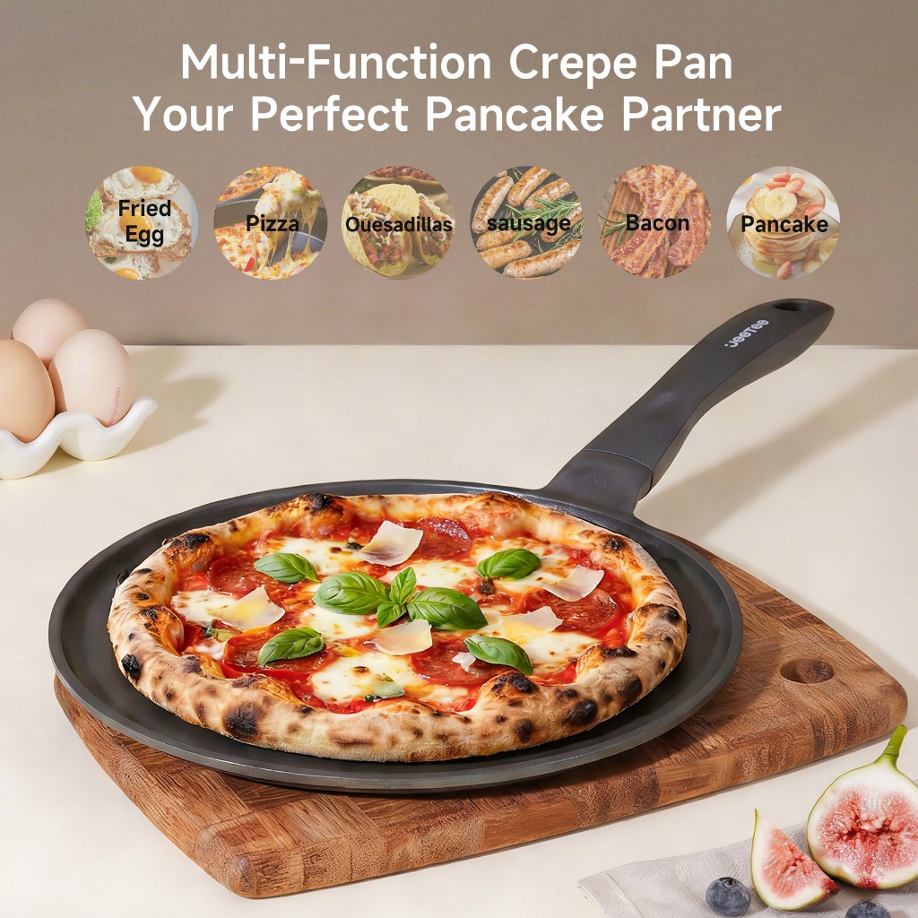 JEETEE Pizza Pan Non-Stick 25cm Flat Pan Crepe Pancake Maker Pan Suitable For Gas & Induction