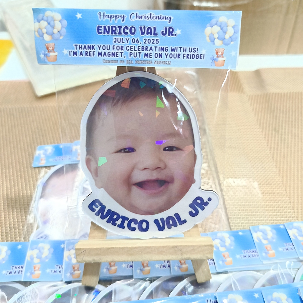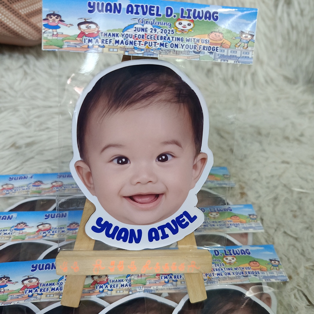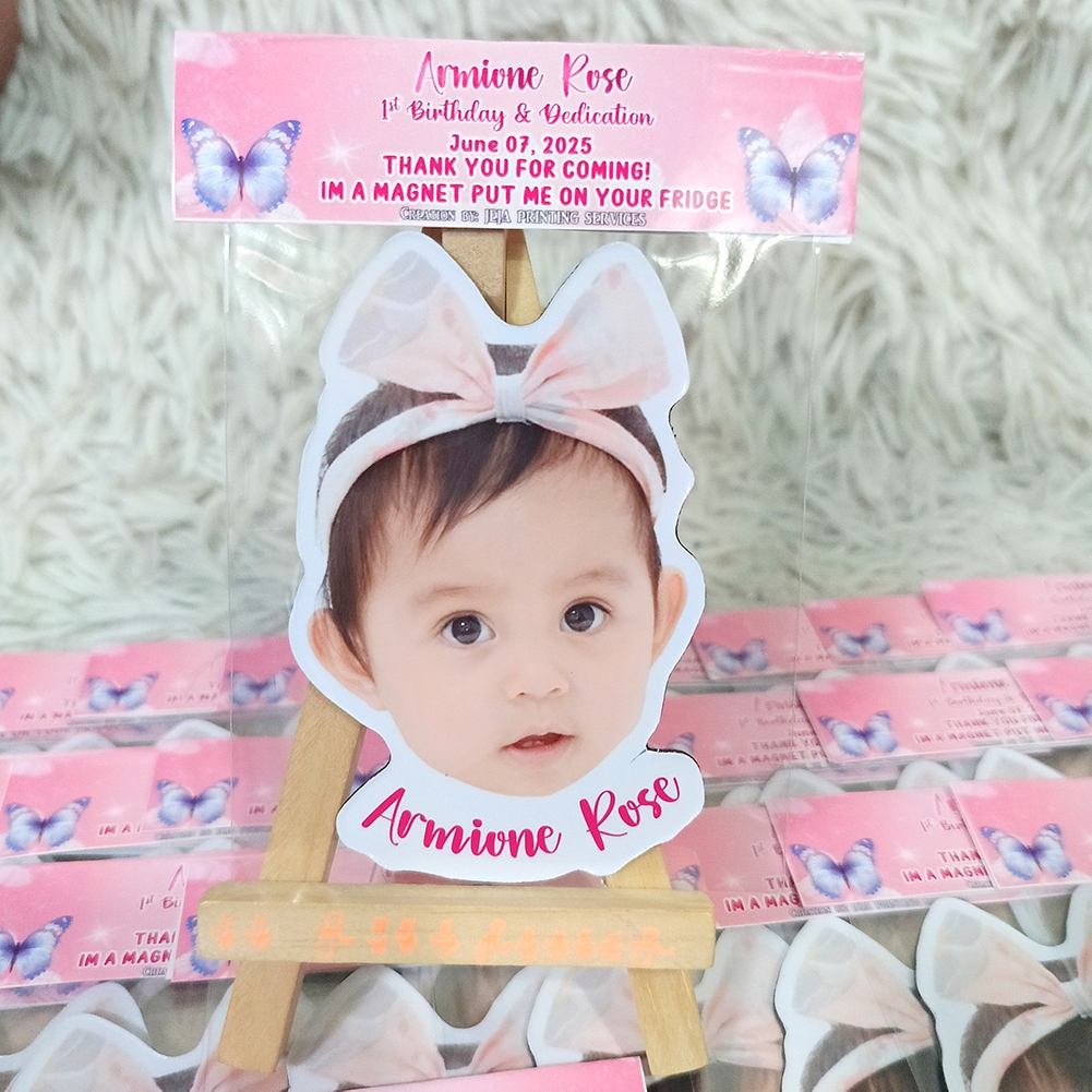 JEJA P15-17/pc Personalized Bubble Head/Face Cut-Out Ref Magnet Souvenirs Baptism/Birthday 3.6x2.6in