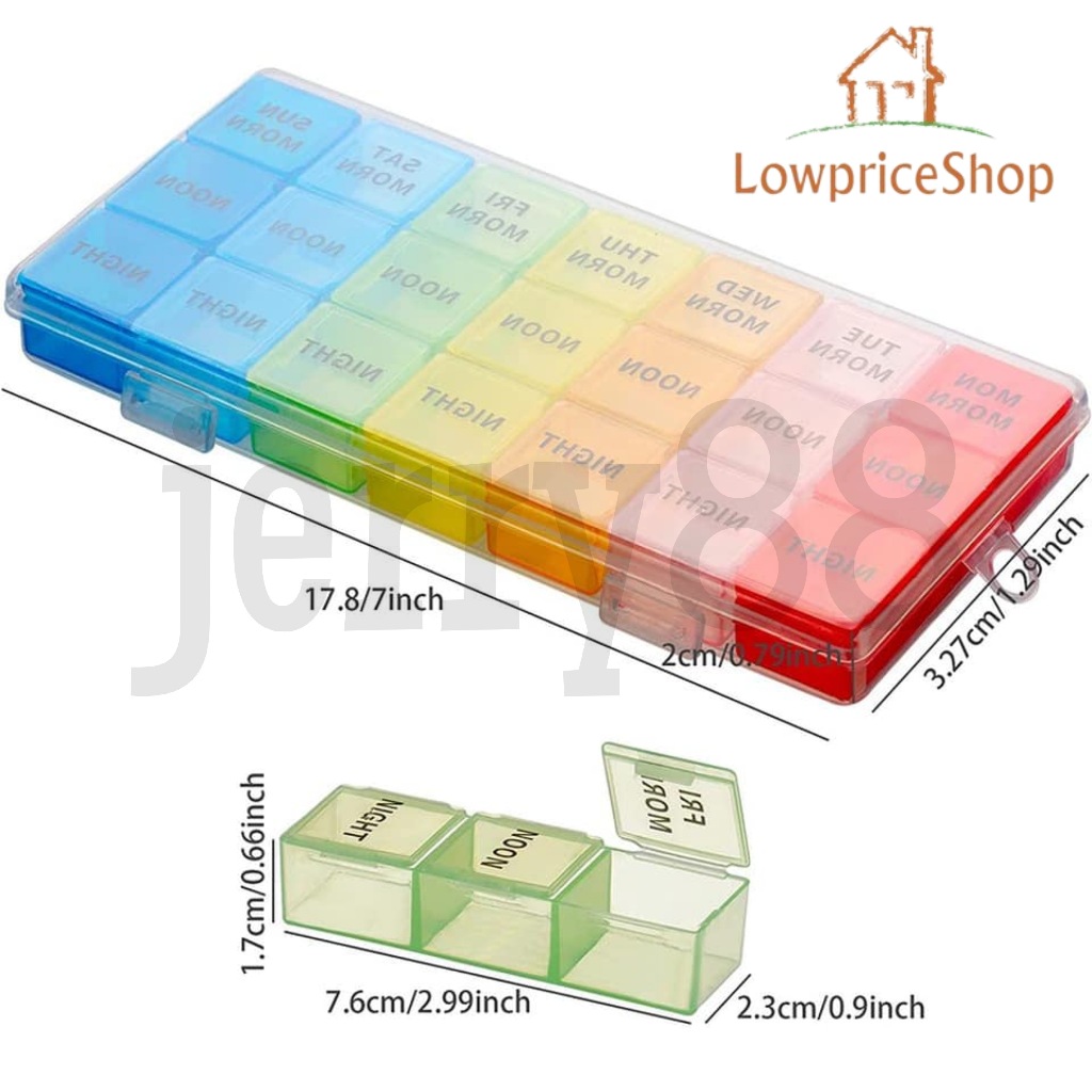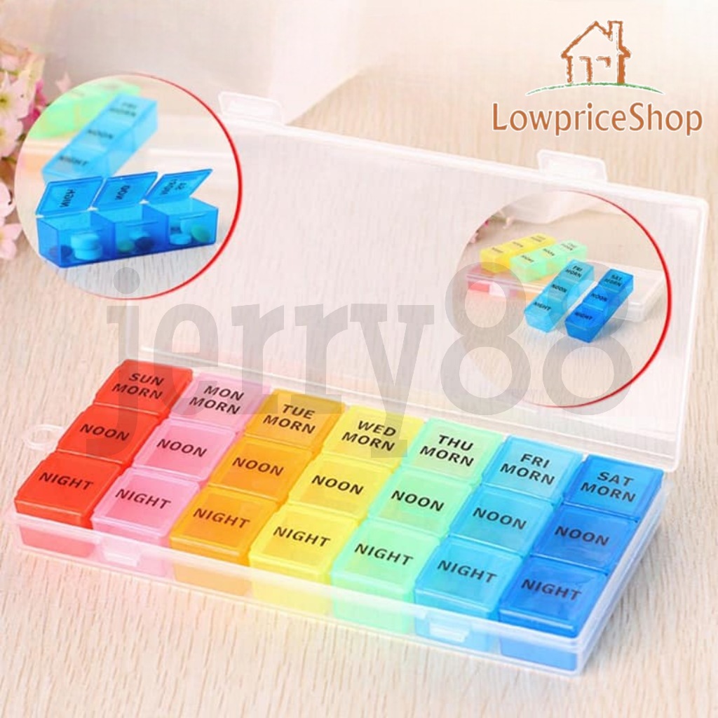 JERRY88 Medication Storage Box Weekly Mini Medication Organizer 7 Day 21 Slots Pill Medicine Box