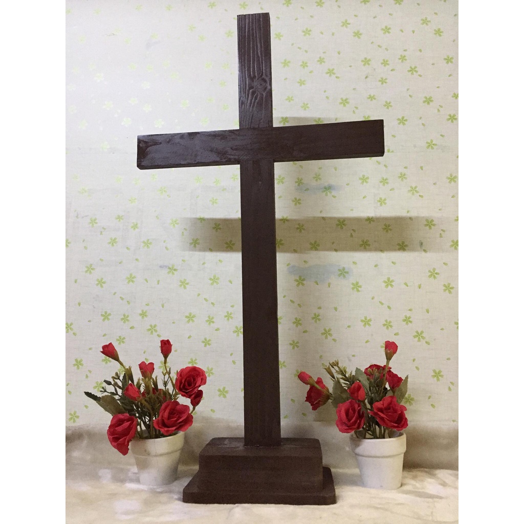 JESUS CRUCIFIX WOODEN CROSS STAND 63CM/25 INCHES