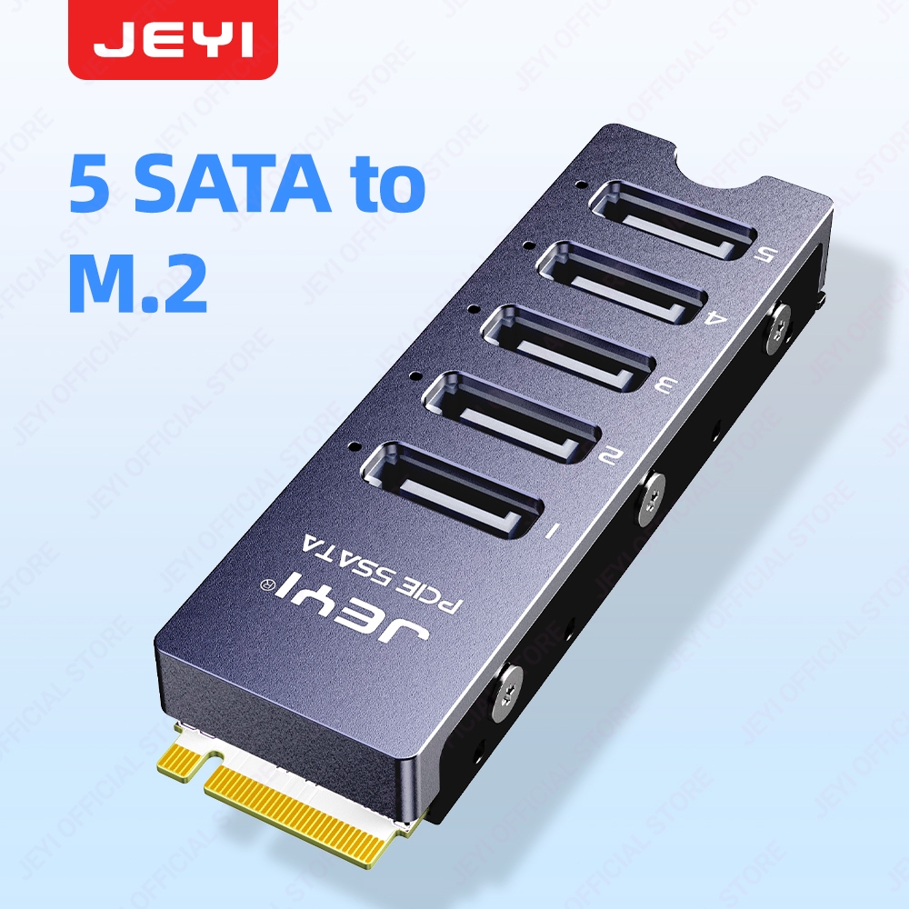 JEYI NVMe M.2 to 5 Sata Adapter, Internal 5 Port Non-RAID SATA III 6GB/s NVMe Adapter Card for Desktop PC Support SSD and HDD
