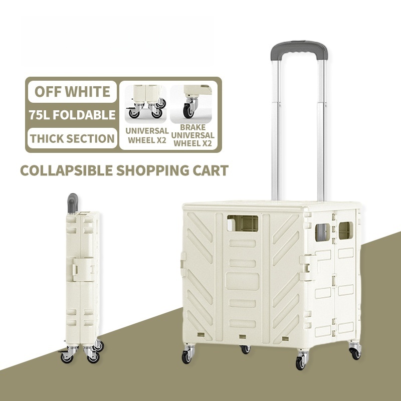 JF 50L/75L Trolley storage box collapsible wheeled storage box outdoor camping cart shopping cart