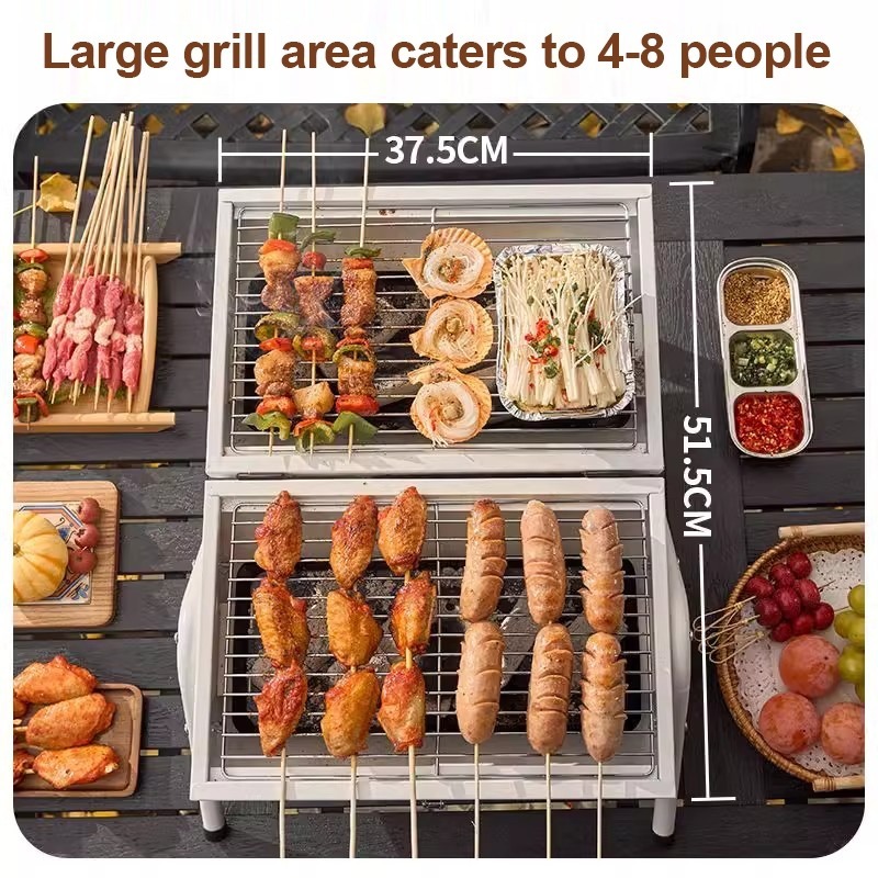 JF BBQ Grill 2-sided grill Foldable cover Barbecue grill Barbecue Charcoal Griller Set