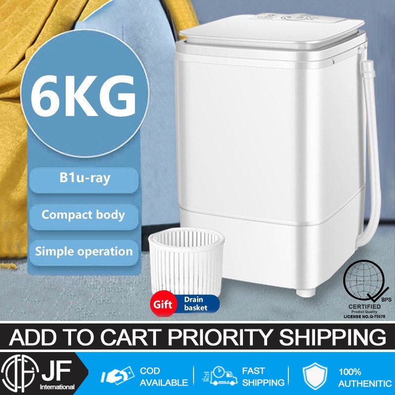 JF New small mini washing machine 6KG can wash 5 clothes at a time, 250W power, hands-free, qui