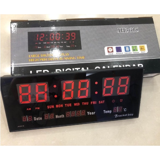 JH3615 Large Digital Display LED Wall Clock (Black)