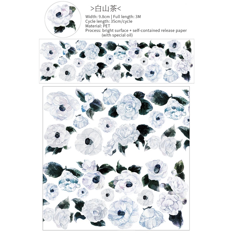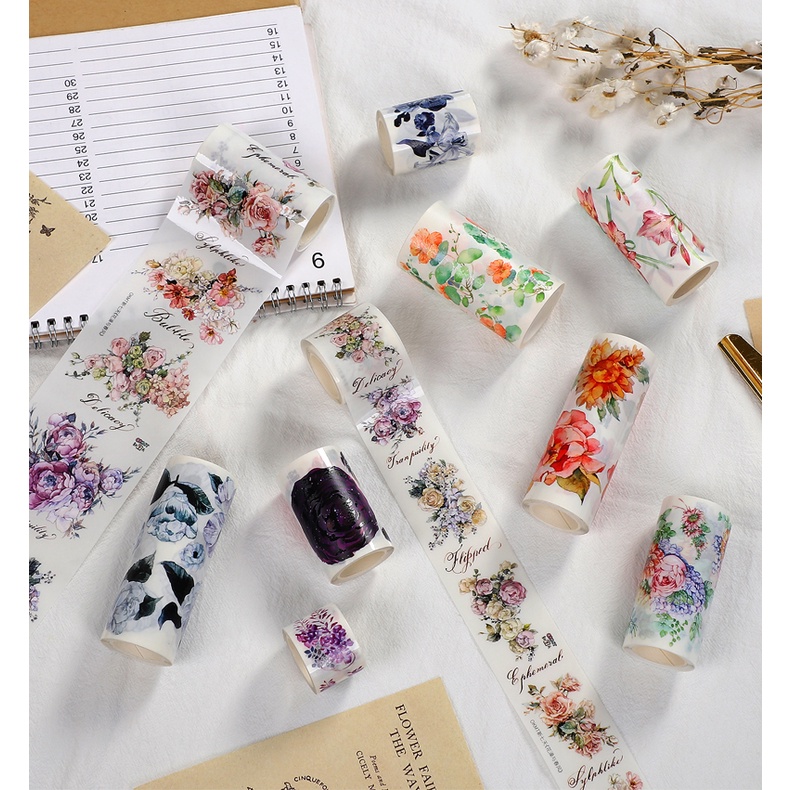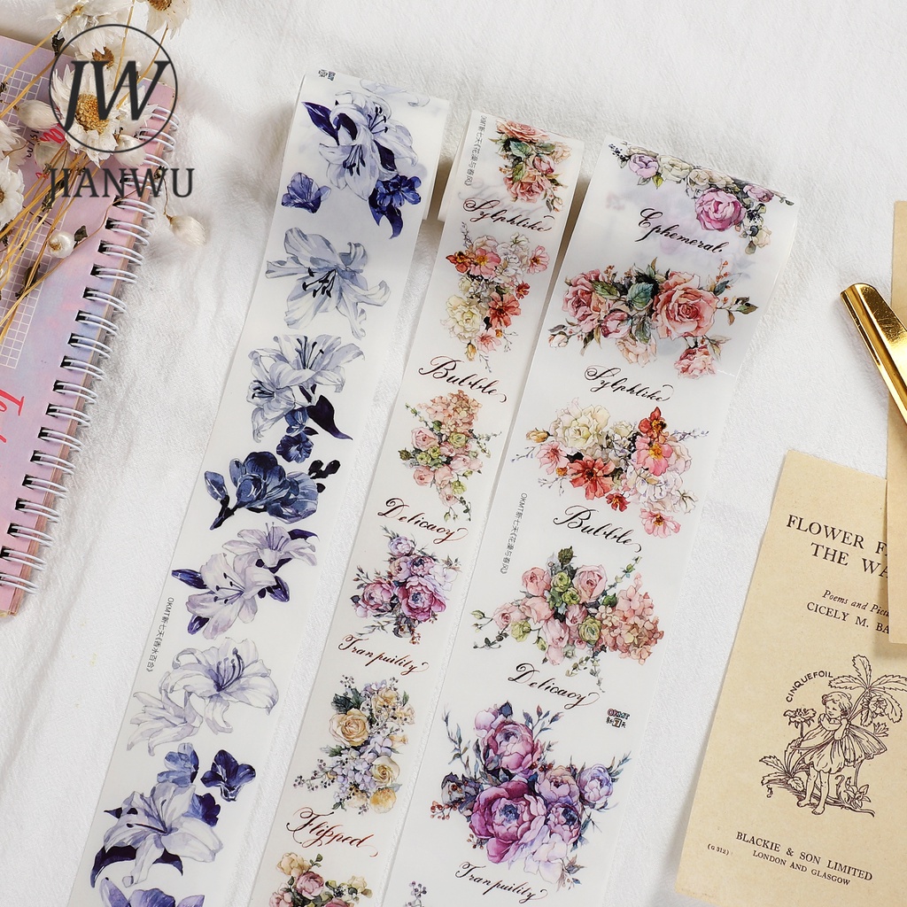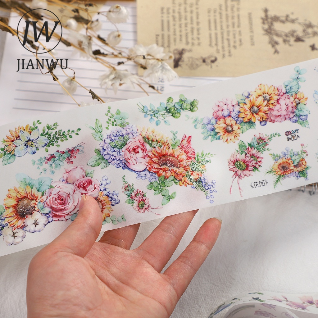 JIANWU 300cm Aesthetic Flowers Plant PET Glossy Washi Tape Journal Decoration Collage Material Scrapbooking Masking Tapes Stationery