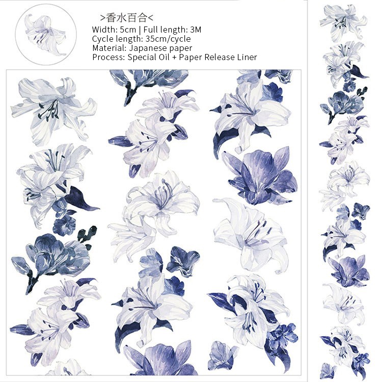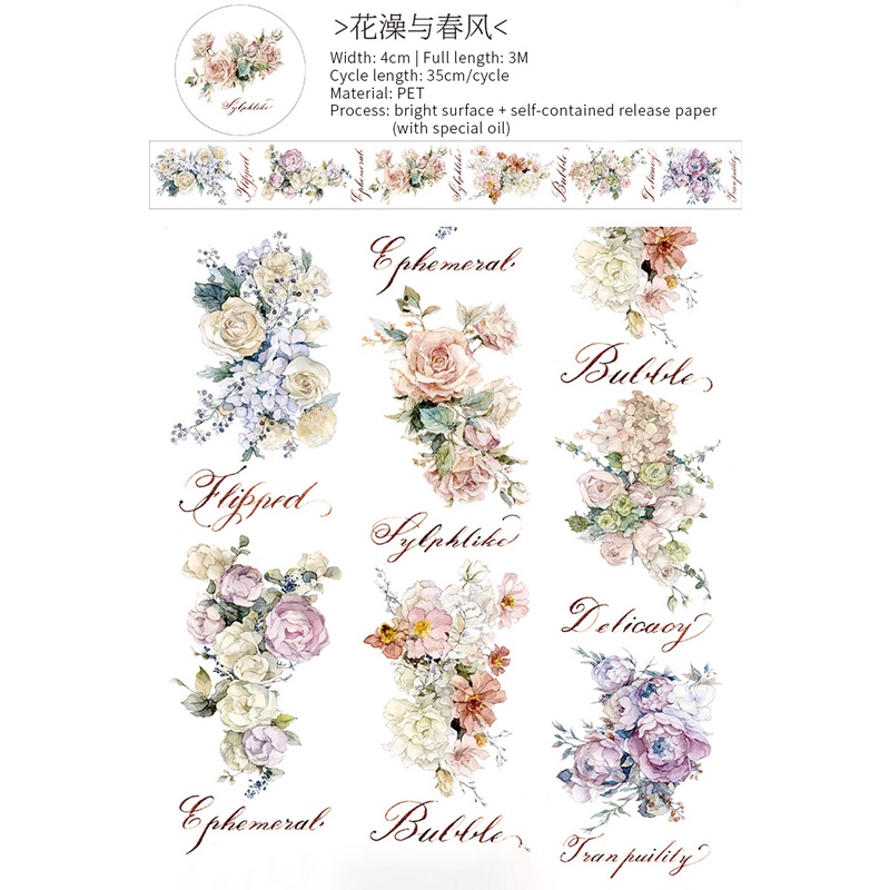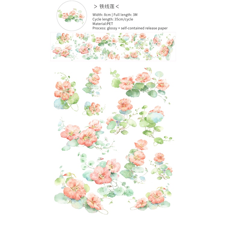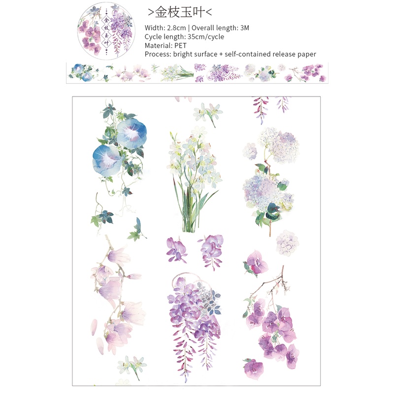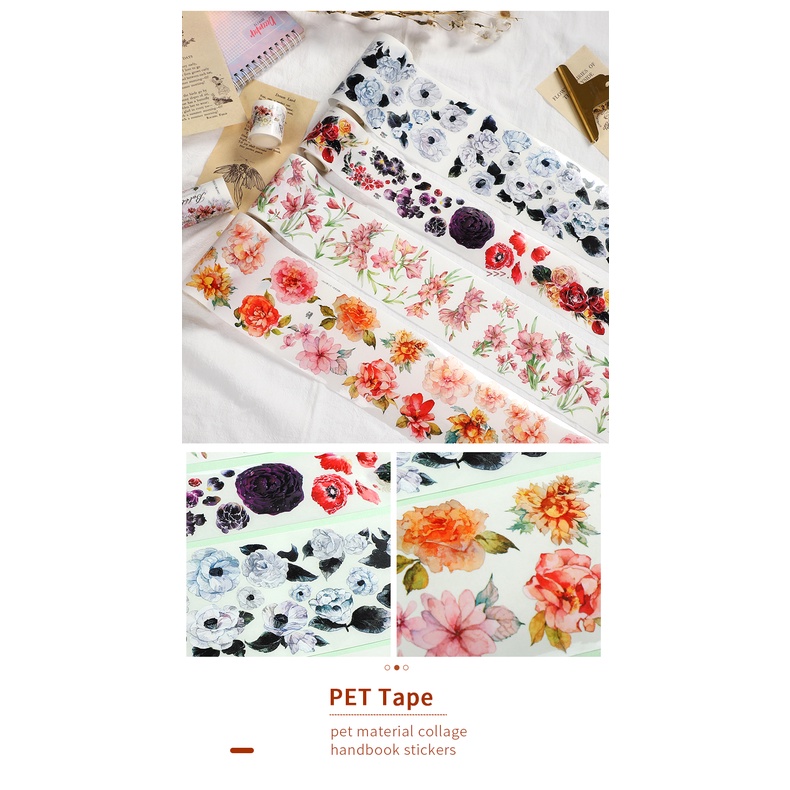 JIANWU 300cm Aesthetic Flowers Plant PET Glossy Washi Tape Journal Decoration Collage Material Scrapbooking Masking Tapes Stationery