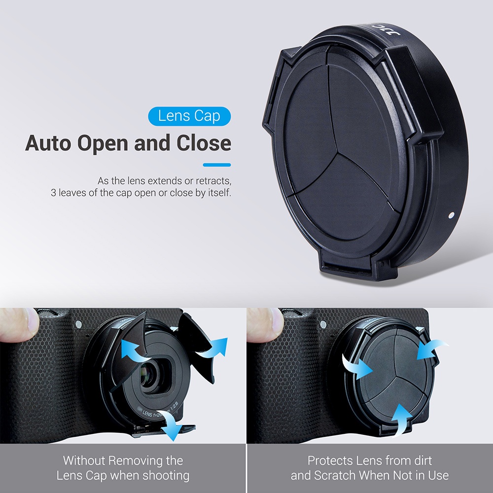 JJC 2-in-1 Auto Lens Cap Lens Hood for Ricoh GR3x HDF Camera, Automatic Open and Close Lens Cap Lens Protective Cover for Ricoh GR IIIx GR3x GR3x HDF Camera