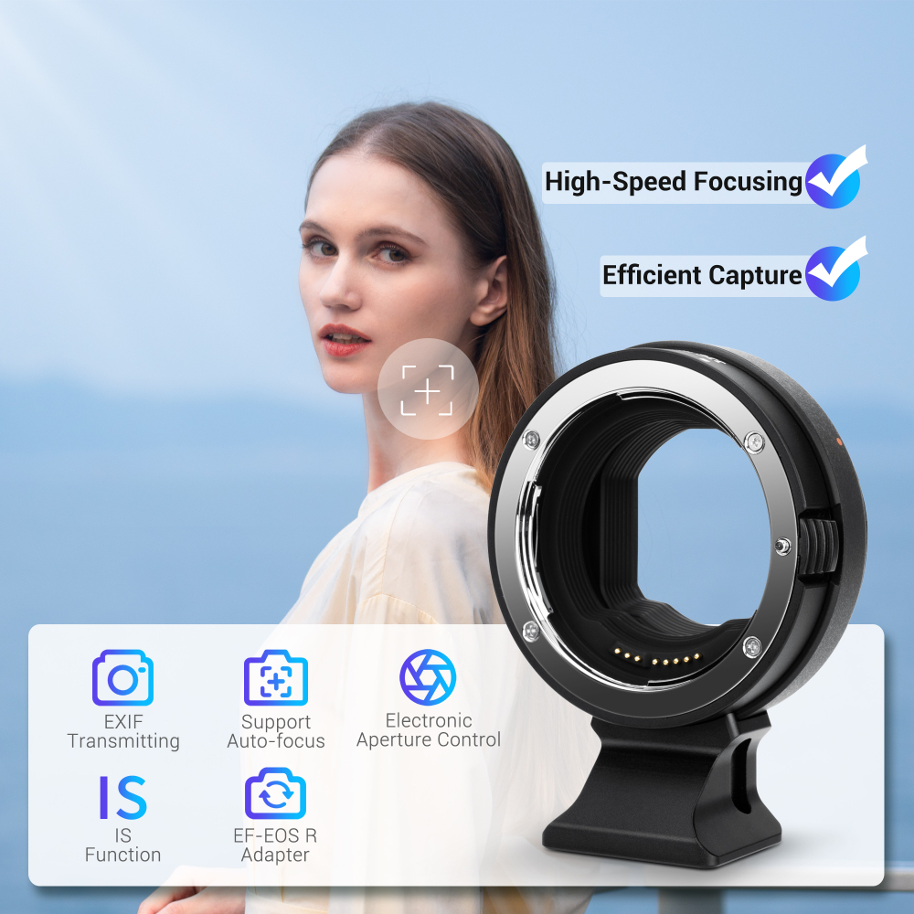 JJC EF-EOS R Canon Lens Adapter Auto Focus Lens Converter for EF EF-S Mount Lens to RF Camera Body of Canon EOS R100 R50 R10 R8 R7 R6 Mark II R5 R3 RP R Ra