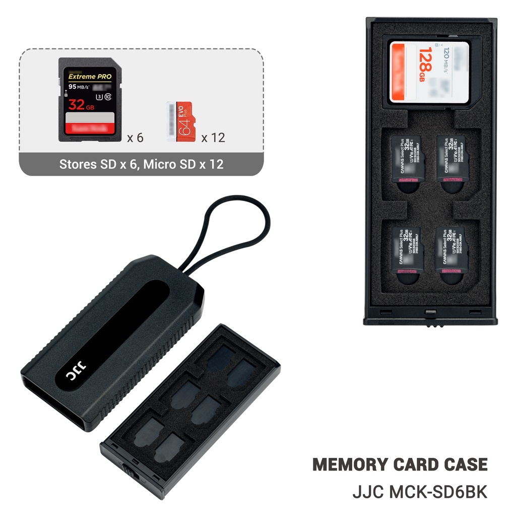 JJC Portable SD Card Case, Compact Memory Card Case with Double-sided Storage Slots For 6 SD Cards and 12 TF Cards