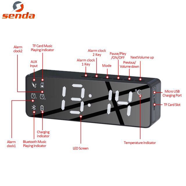JK MALL SENDA Wireless Portable Bluetooth Speaker ALARM CLOCK Digital Led