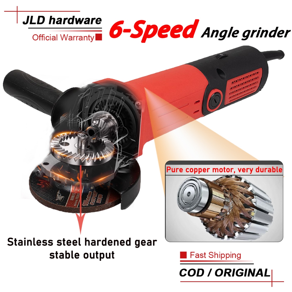JLD 6-Speed Angle Grinder 4''Coper Motor Cutting/Polishing/Grinding/Grooving Grinder Free disc