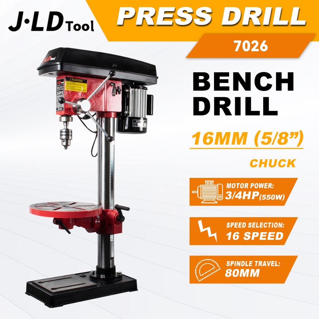 JLD Drill Press 550W (3/4HP) Bench Drill 16mm (5/8”) Stand Drill Machine Power Tools Press Drill