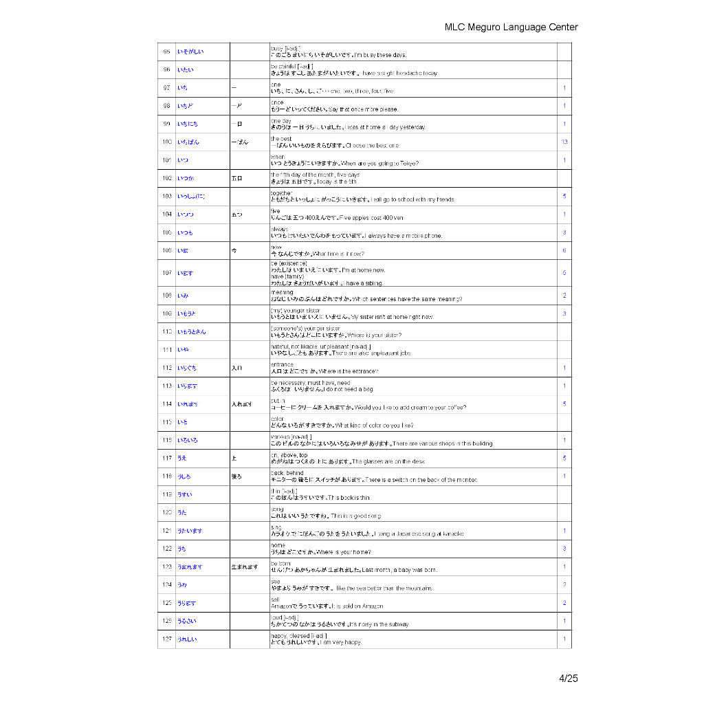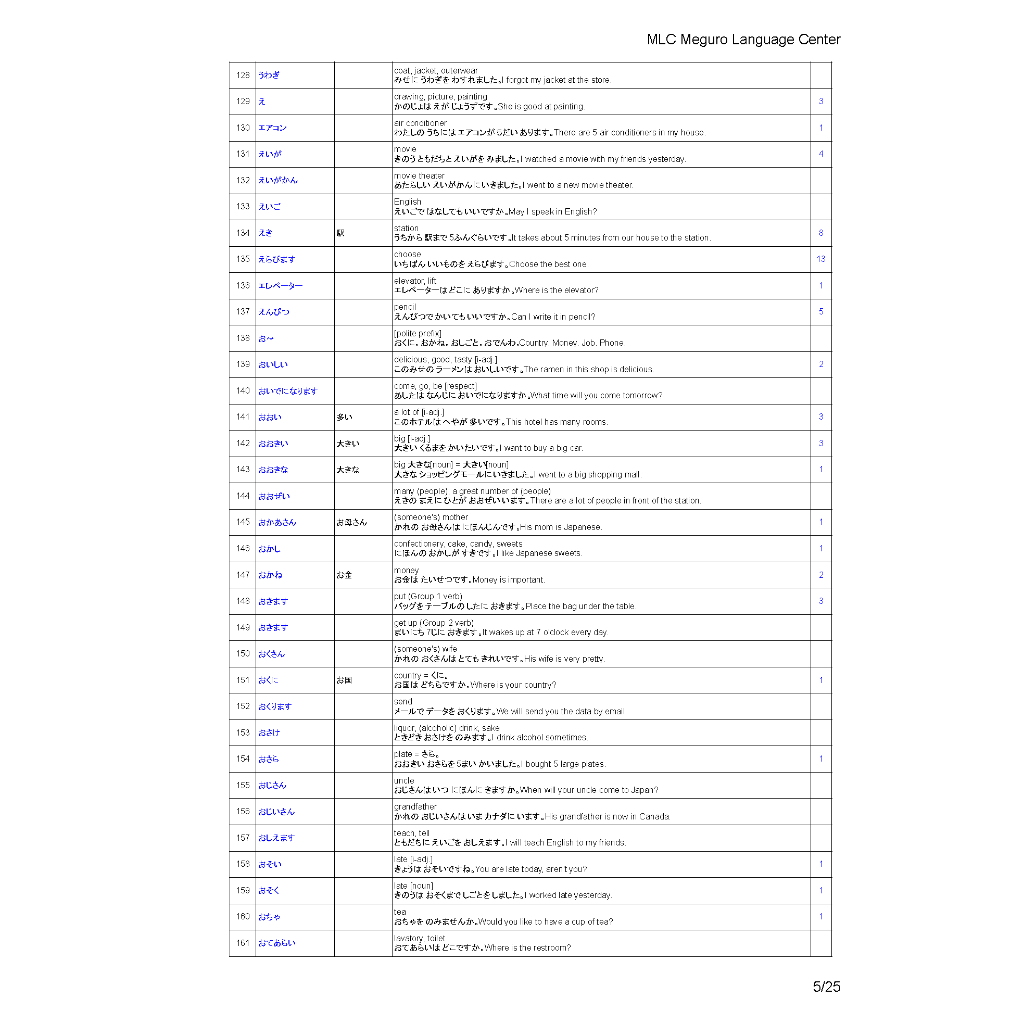 JLPT N5 Vocabulary List (802 Words)