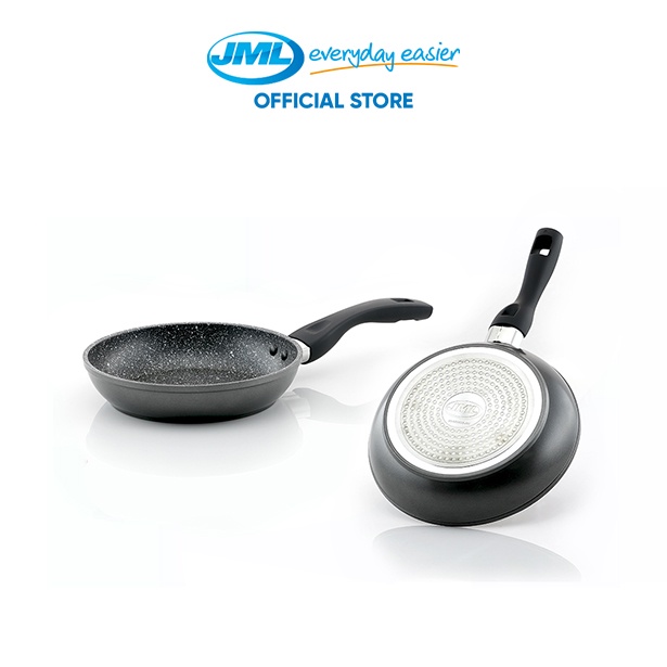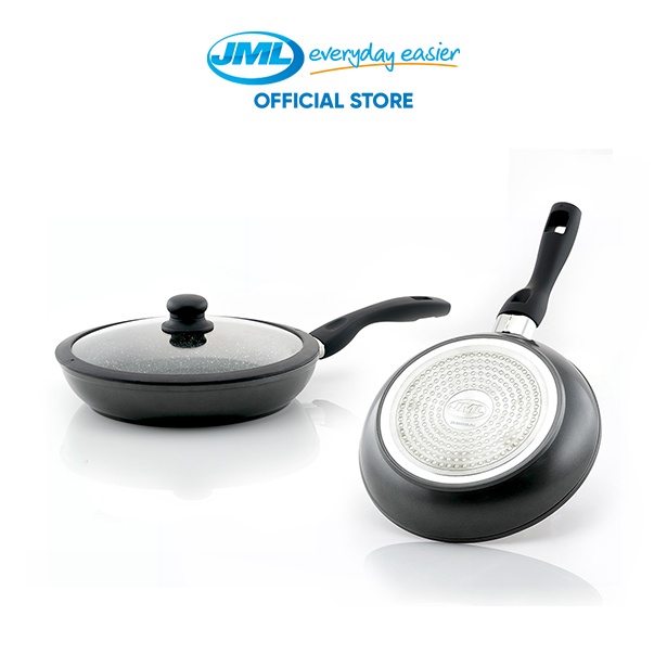 JML Stoneware Frying Pan Set with 2 pcs Pro Pan Silicon Lid + Stainless Steel Flame Guard Black