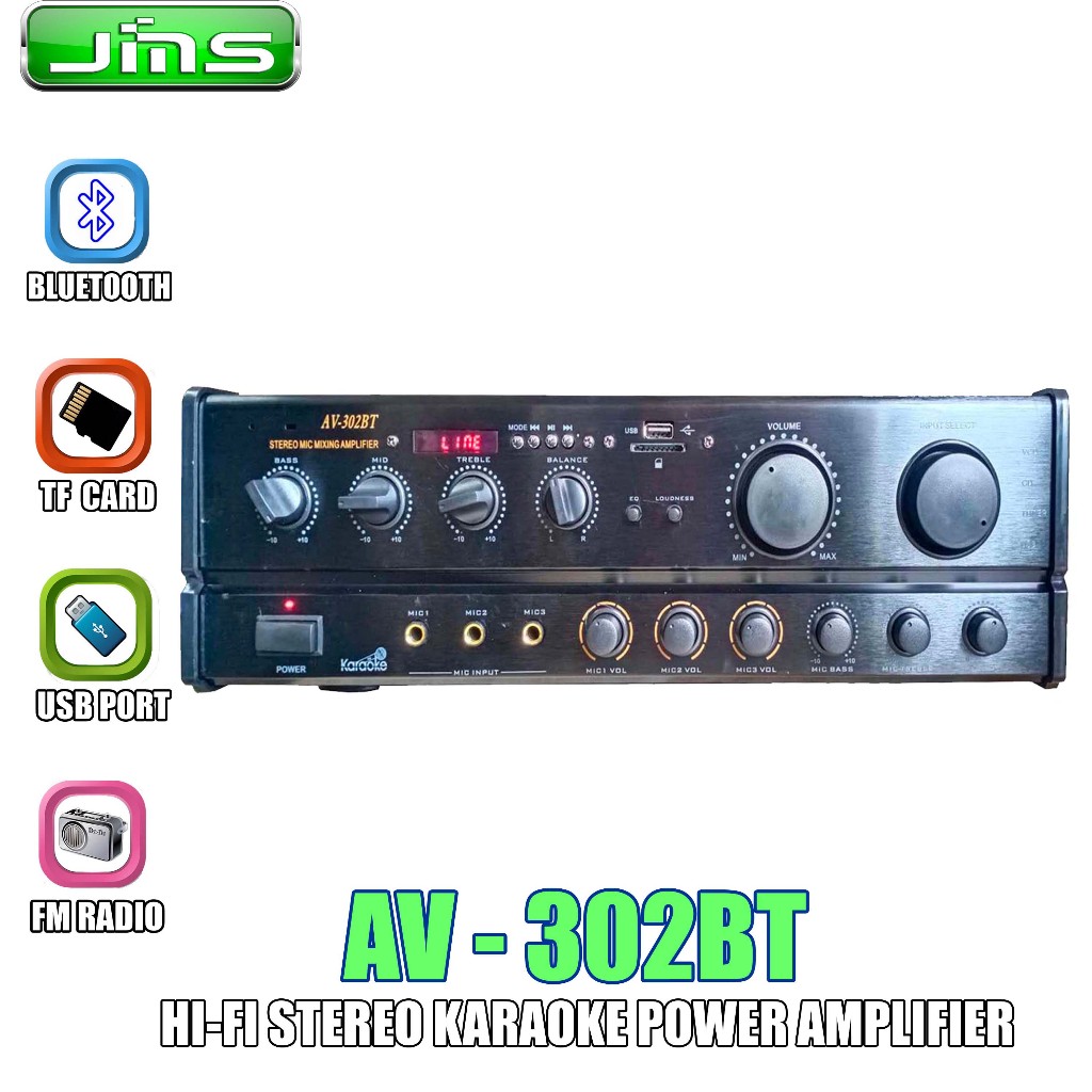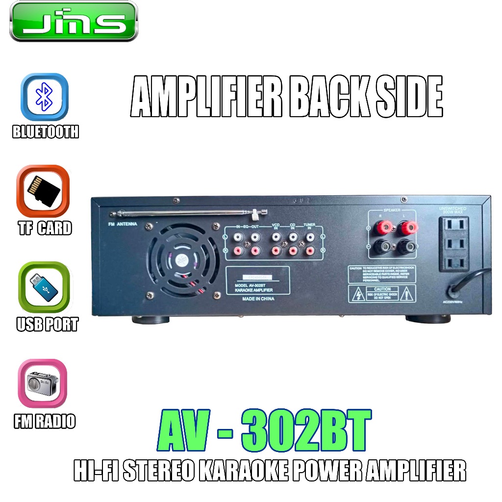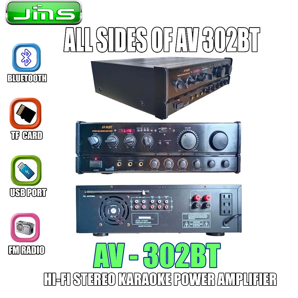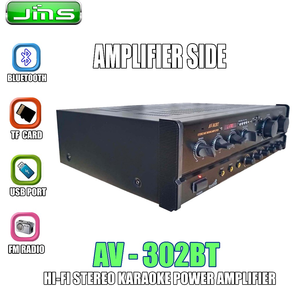 JMS AV-302 BT POWERFUL STEREO AMPLIFIER WITH 200-WATT OUTPUT PER CHANNEL