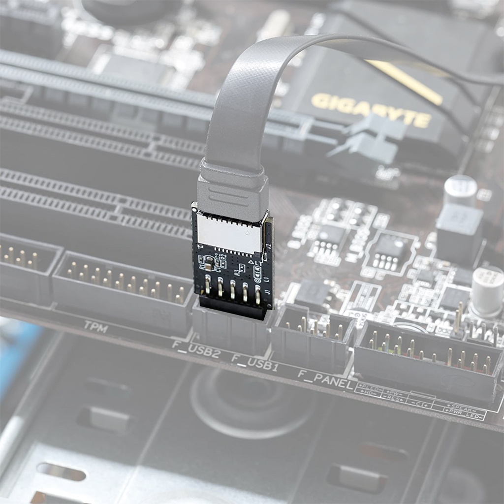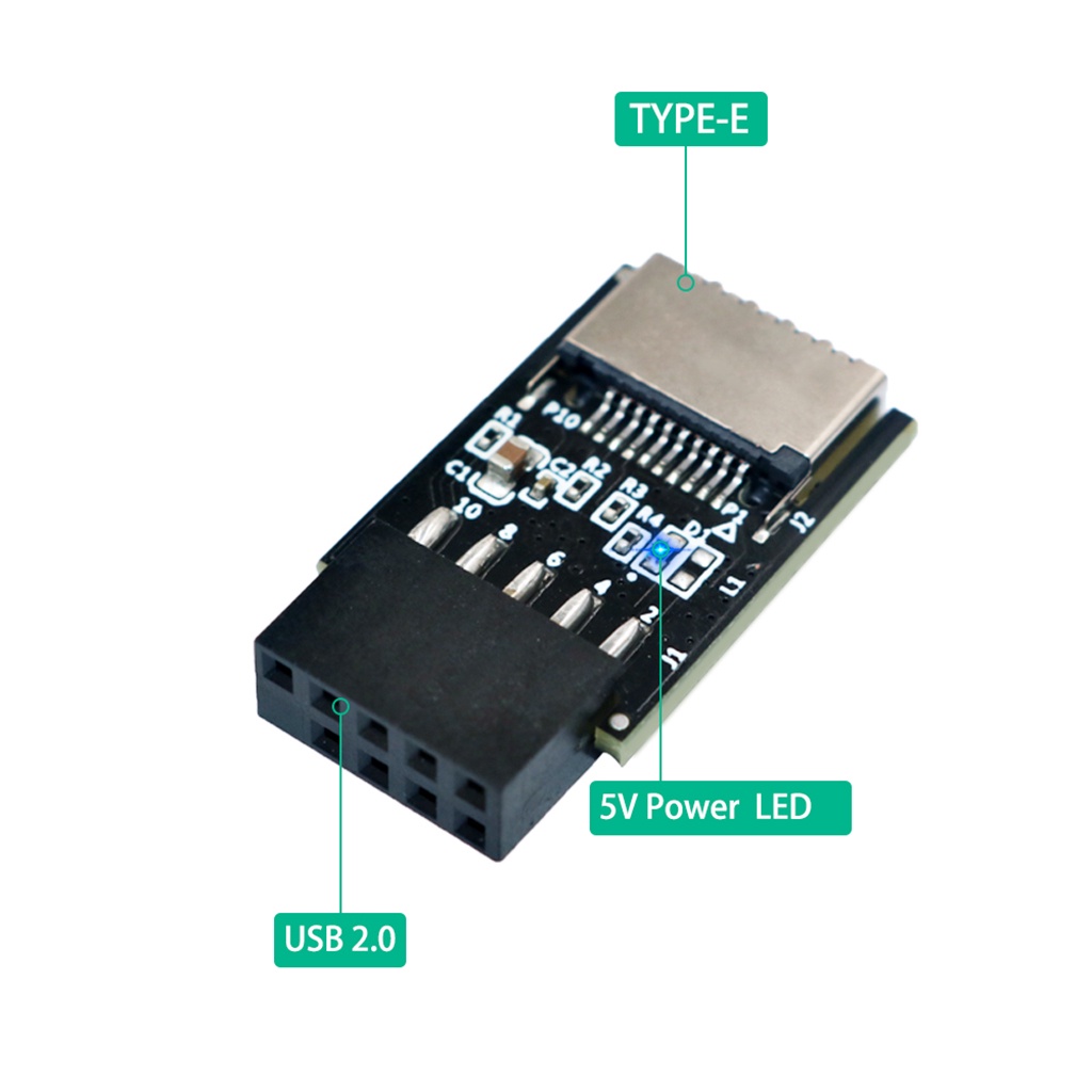 JMT New Version USB 3.1 Front Panel Socket Key-A Type-E to USB 2.0 9Pin Header Male Extension Adapter with 5V Power LED Converter