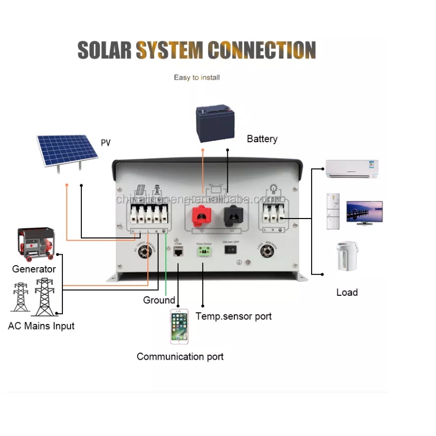 JNGE Low Frequency Pure Sine Wave Toroidal Inverter Hybrid Offgrid 24V 48V 3kW 220V/60Hz 70A MPPT Wa