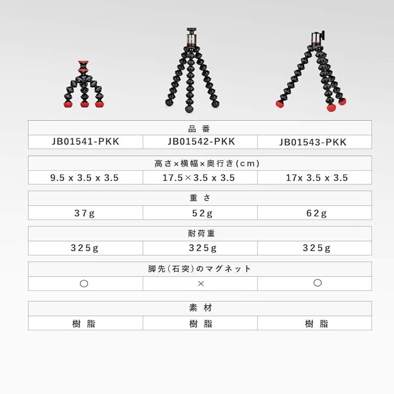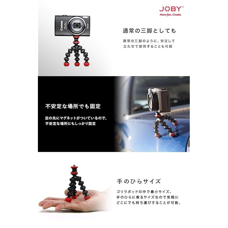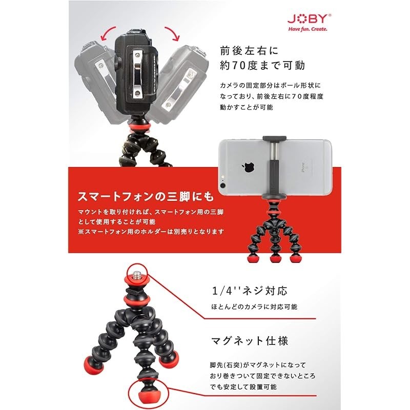 JOBY Camera Tripod Mini Tripod GorillaPod Magnetic Mini Load Capacity 325g Small Compact Black/Charcoal/Red JB01541-PKK