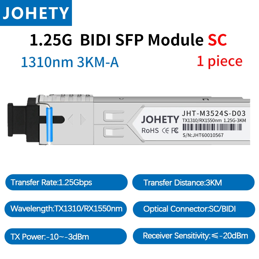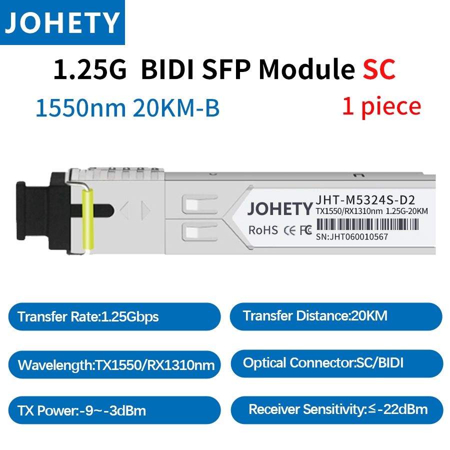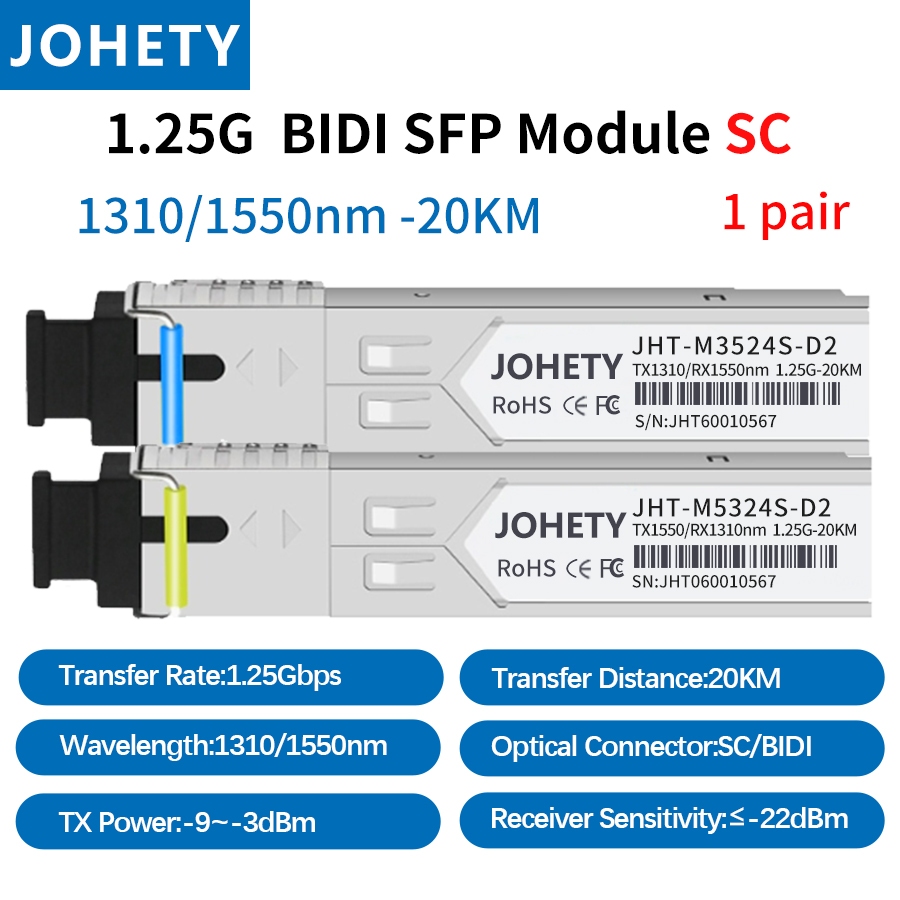 JOHETY 1 Pair Gigabit SFP Module BiDi SC 3KM/20KM 1310nm/1550nm Single Mode simplex SFP Module With DDM Compatible Cisco/Mikrotik /TP-LInk Switch