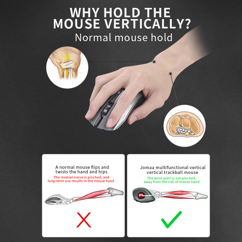 JOMAA Dual Mode Trackball Bluetooth Mouse 2.4G Vertical Rechargeable Ergonomic Mice for Computer PC iPad Easy Thumb Control Mouse