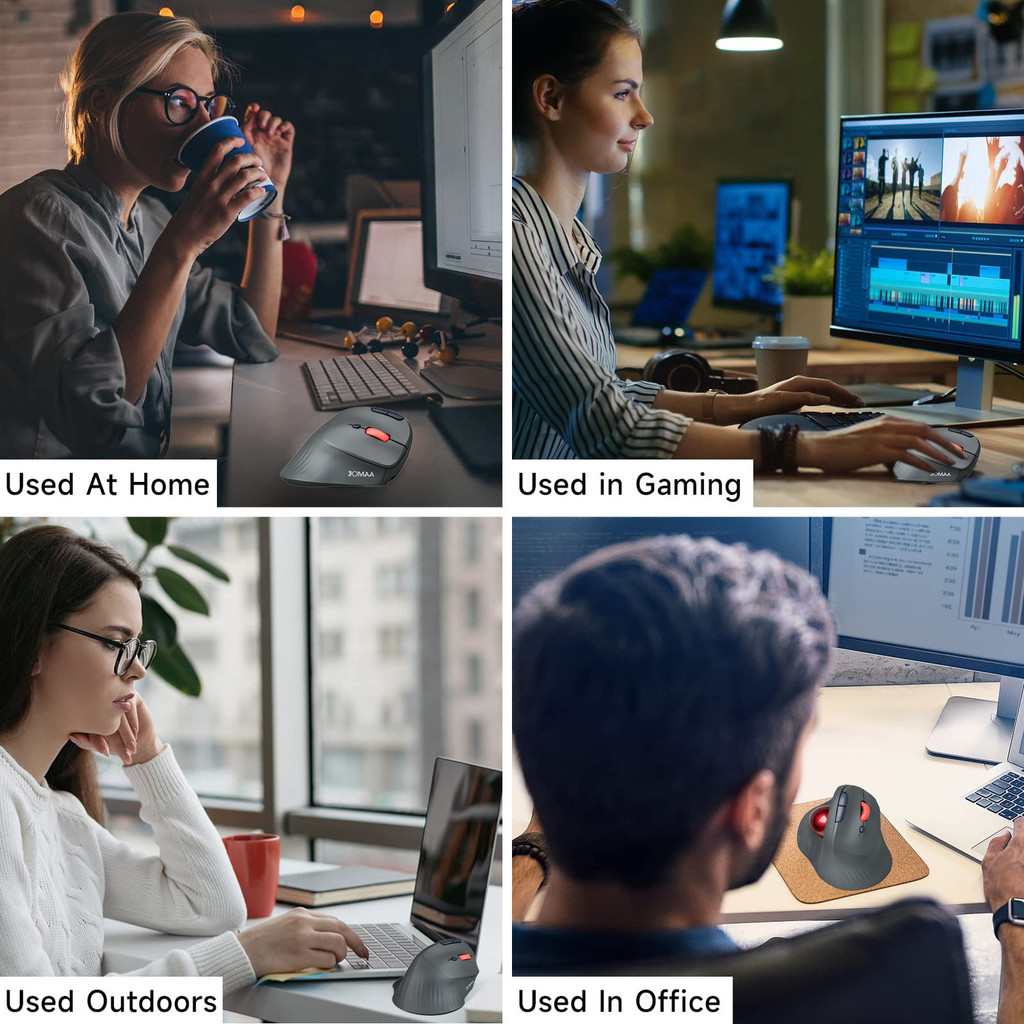 JOMAA Wireless Vertical Trackball Mouse Professional CAD Drawing Rechargeable Office Mice Ergonomic Bluetooth Dual-mode Mice For Laptop PC