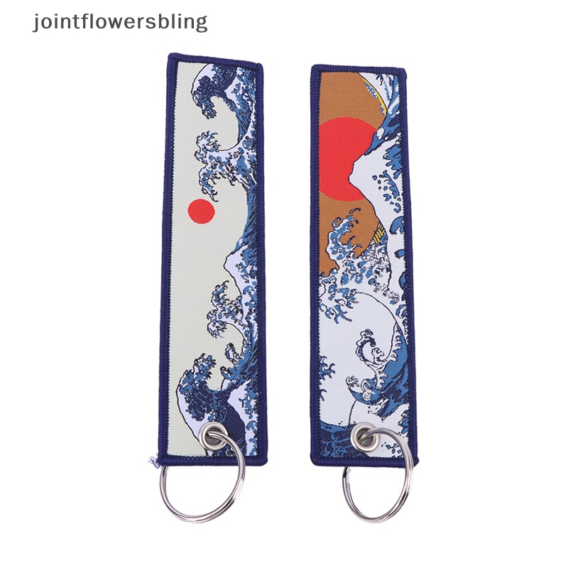 JOPH 1Pc Japanese Waves Art Drawing Embroidery Key Fobs Backpack Key Tags Motorcycles Keychain Keyrings Cosplay Accessories Gift Martijn