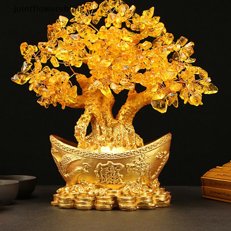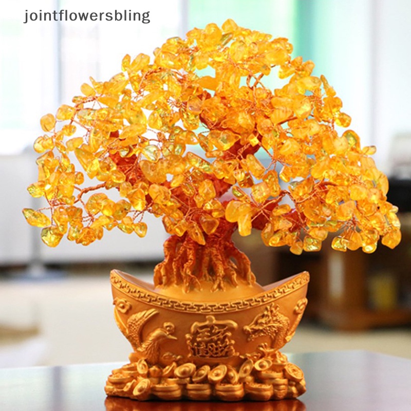 JOPH Lucky Money Tree Chinese Gold Ingot Crystal Fortune Tree Ornament Wealth Ornament Home Office Table Decoration Tabletop Crafts Martijn