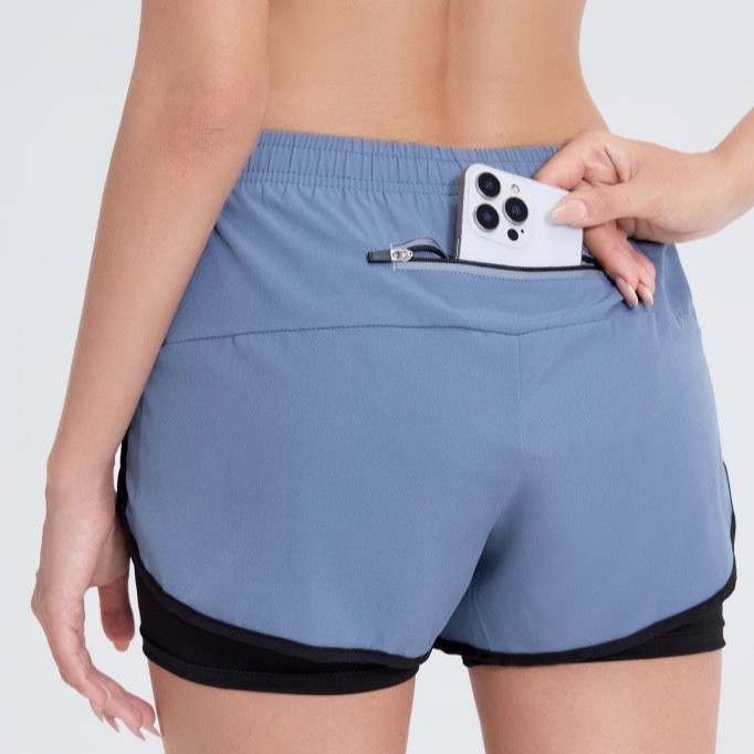 JOY Women's Sports Back waist zipper pocket Running shorts With Cycling Gym/Yoga/Volleyball 3033