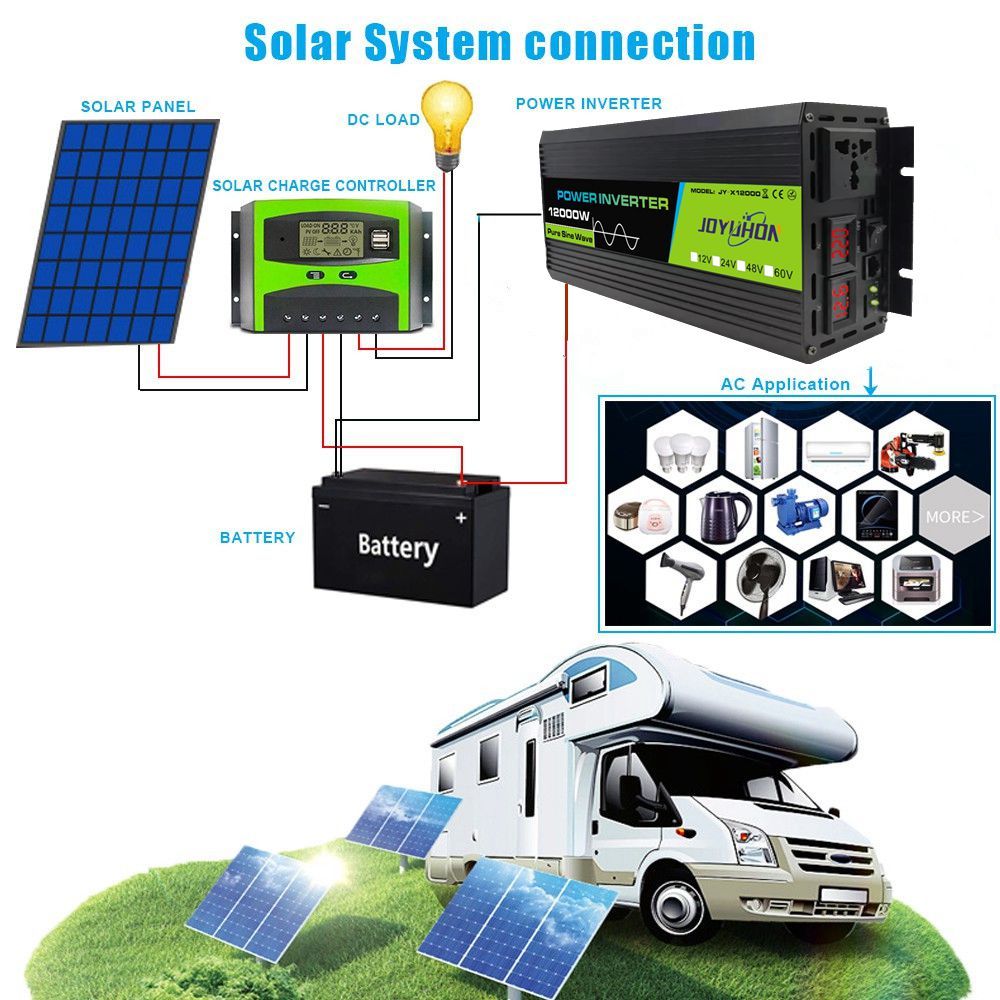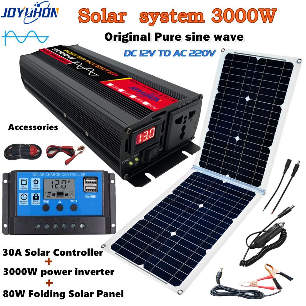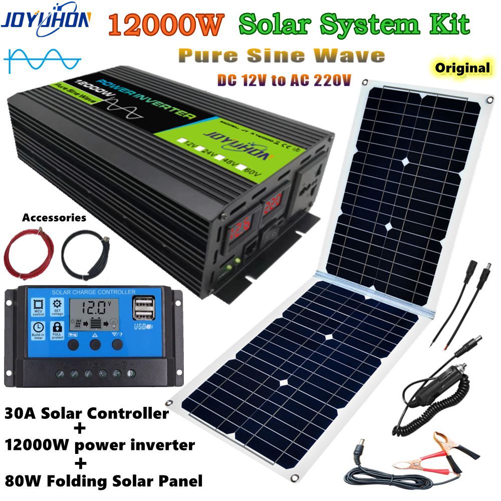 JOYUHON Solar System 12000W Pure Sine Wave Power Inverter 12V TO 220V 80W Solar Panel 30A Controller