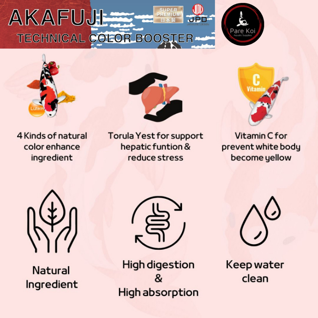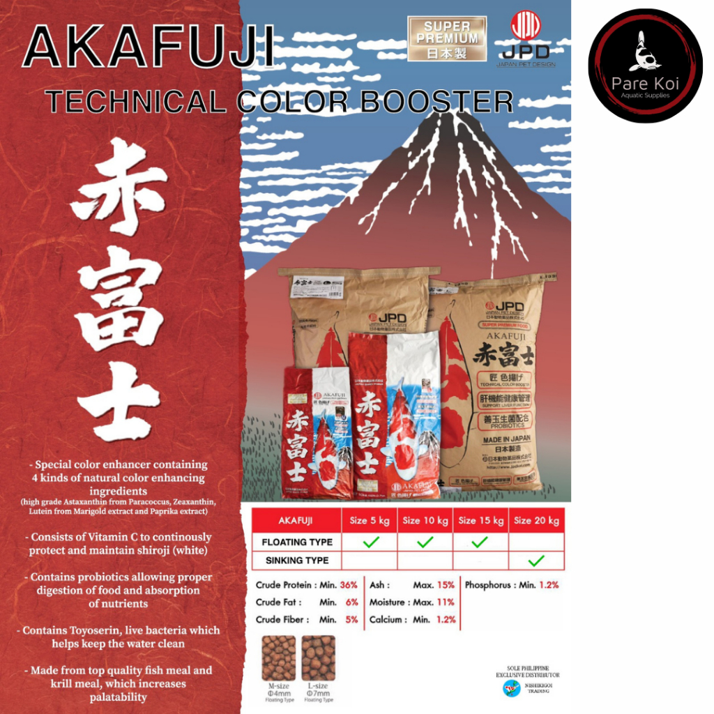 JPD Akafuji Technical Color Booster Koi Food 1kg ( Floating Pellets)